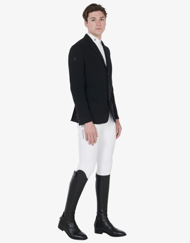 Equestro er et smart italiensk mærke som virkelig vinder indpas og er med på noderne. Denne stævnejakke er fremstillet i et super lækkert elastisk materiale, som er helt i tråd med mange af de andre kendte mærker. Prisen er - synes vi- skarp, i forhold til hvad du her får for pengene. En smart og klassisk stævnejakke med flotte detaljer og i lækkert moderne materiale. Jakken har et meget elegant og klassisk udtryk og materialet er teknisk og åndbart og meget velsiddende.