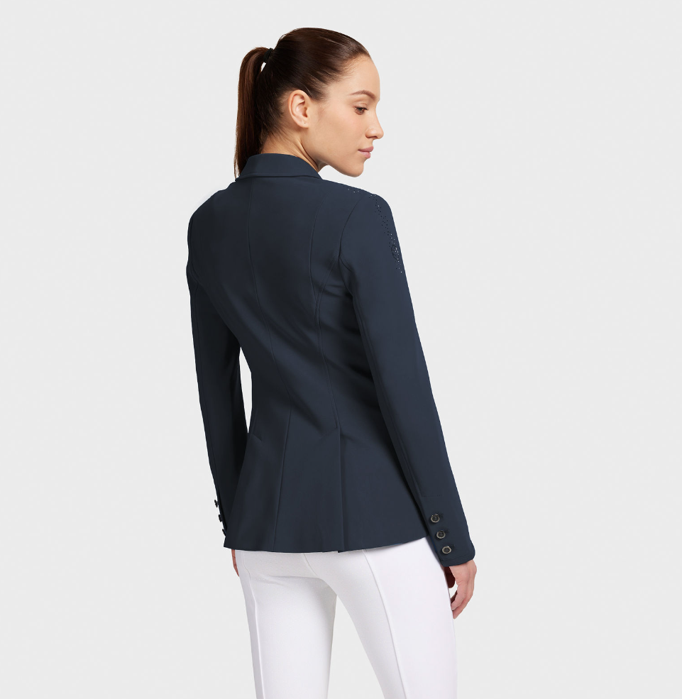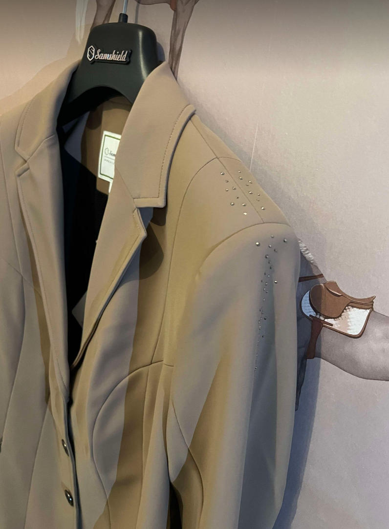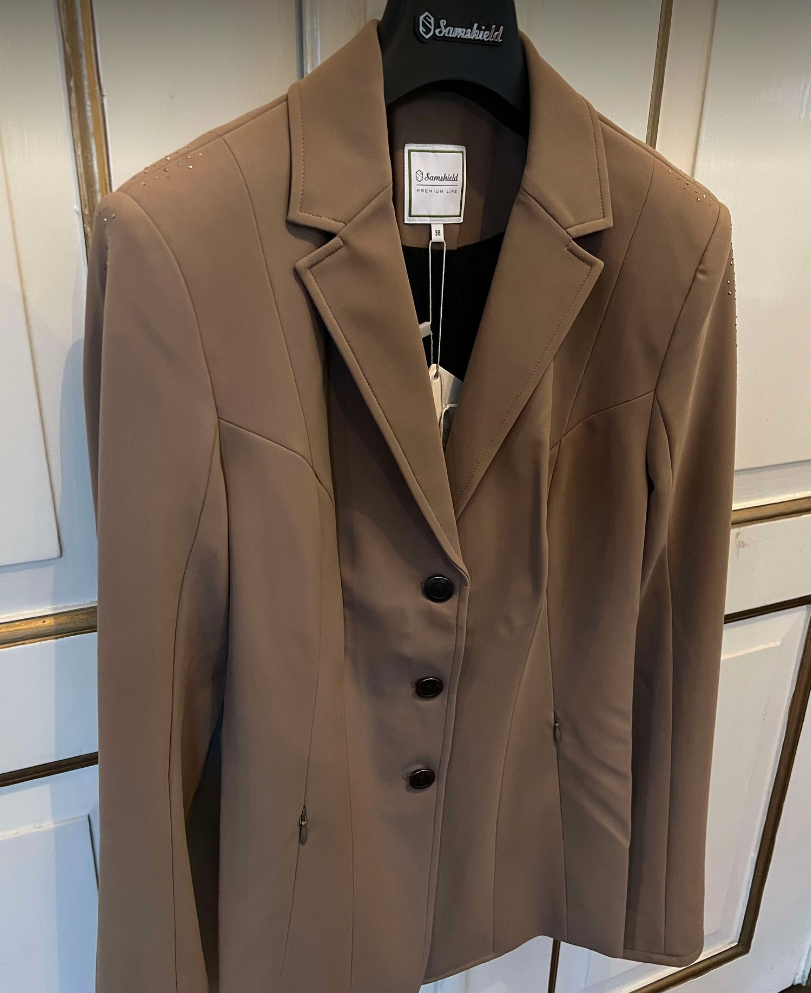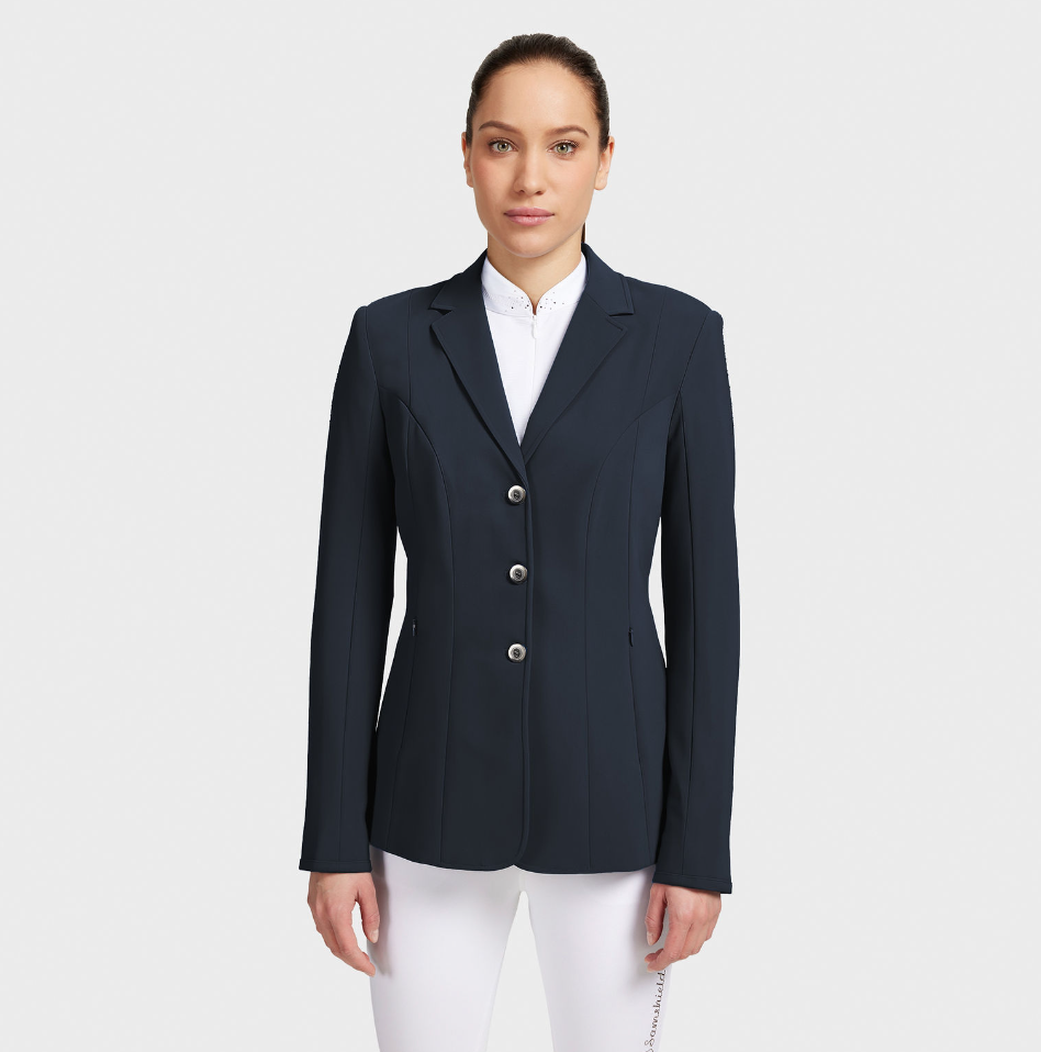 Samshield Frida stævnejakke er en meget enkel og velsiddende stævnejakke i Samshields populære materiale. Samshield Frida tilbyder rytteren et klassisk og stilfuldt snit med ganske lidt elegant tone-i-tone pynt på skulderen. Stævnejakken har to diskrete lynlåslommer udvendigt. Den er lidt længere i kroppen end modeller som Victorine for eksempel. Et godt valg til rytteren som kan lide det stilrene look uden at gå på kompromis med funktionaliteten, da jakken ud over at være smuk på også giver god bevægelsesfrihed og så er den til at trække vejret i.