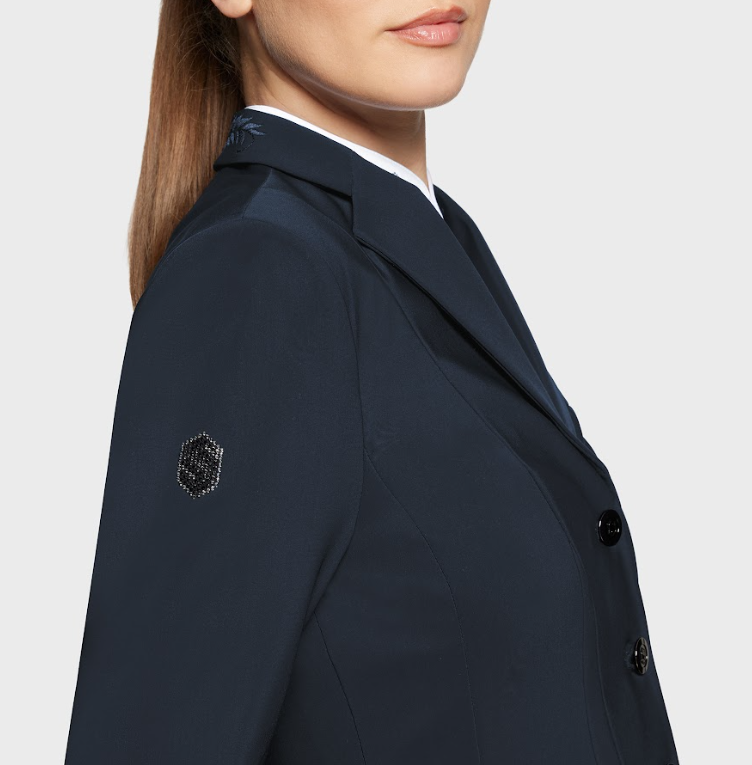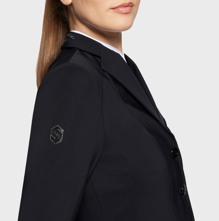 Samshield Victory Flower er en klassisk stævnejakke til dig som ikke ønsker alt for meget bling-bling men gerne vil have en virkelig behagelig og velsiddende stævnejakke. For det kan Samshield bare- det med at lave stævnejakker i super pasform og behageligt materiale. Denne er meget stilren og med en smule blomsterbroderi samt det klassiske Samshield logo med swarovski på ærmet.