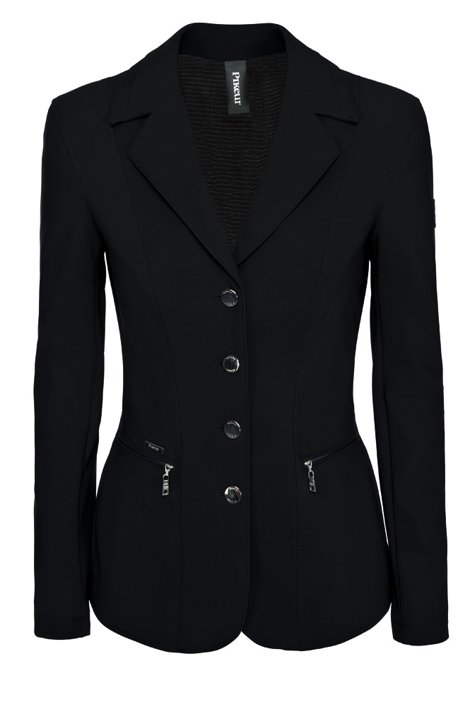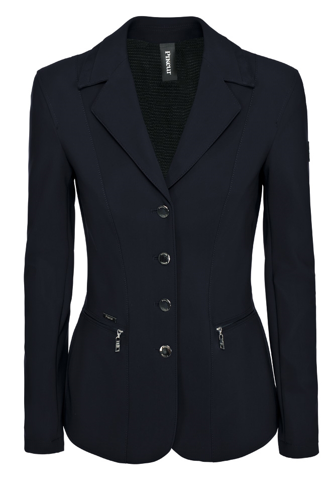 Pikeur Klea stævnejakke med super pasform og i moderne teknologisk materiale. En sporty jakke som er super behagelig at have på. Lukkes med lynlås som sikrer flot pasform og med knapper udenpå lynlåsen. Denne stævnejakke kan bestilles i flere farver - blandt andet i den helt rigtige røde farve som vi i Danmark bruger til jagt og nationsridning. Vær opmærksom på, at kraven dog ikke er helt sort så man må selv være fingernem eller sende den forbi en skrædder, for at få påsyet en helt sort krave. Men det har flere med succes gjort og den bliver så fin.