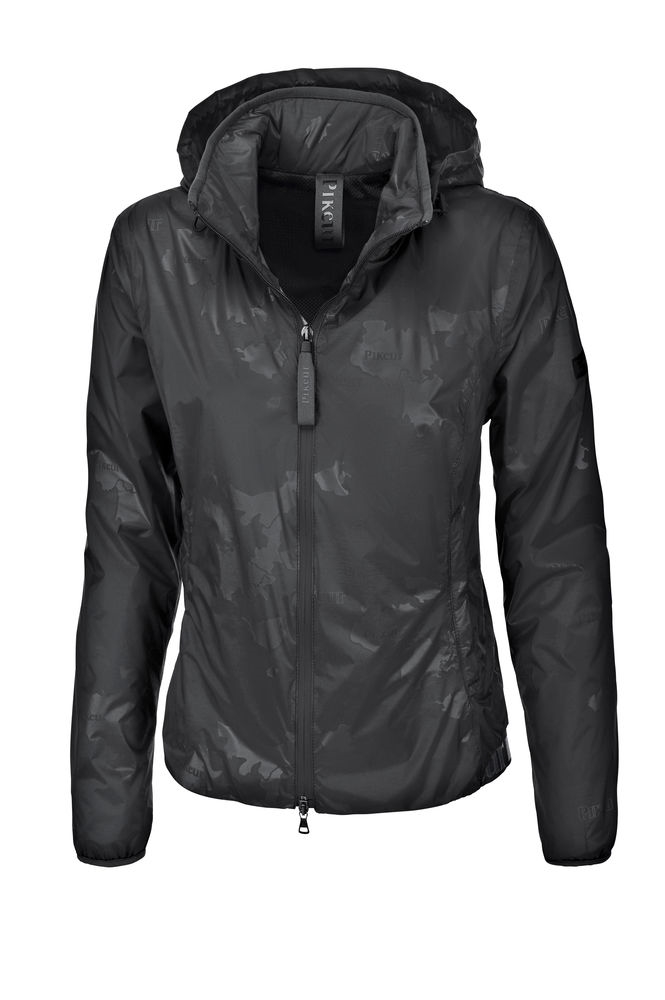 Pikeur Jalou er en super lækker funktionsjakke - den er smart og vandtæt (tapede sømme), og med det klima vi har i Danmark efterhånden, så er den nærmest et "must-have" til den aktive rytter. Med denne jakke kan du varme op udendørs uden at blive helt gennemblødt - jakken er vandtæt og med et mesh materiale indvendigt som gør den behagelig at have på. Pasformen er super fin. Hætten er aftagelig. Pikeur Jalou har mange fine detaljer. Den sorte jakke har svagt camuflage tone-i-tone mønster. En jakke dine med-ryttere vil blive jaloux på!
