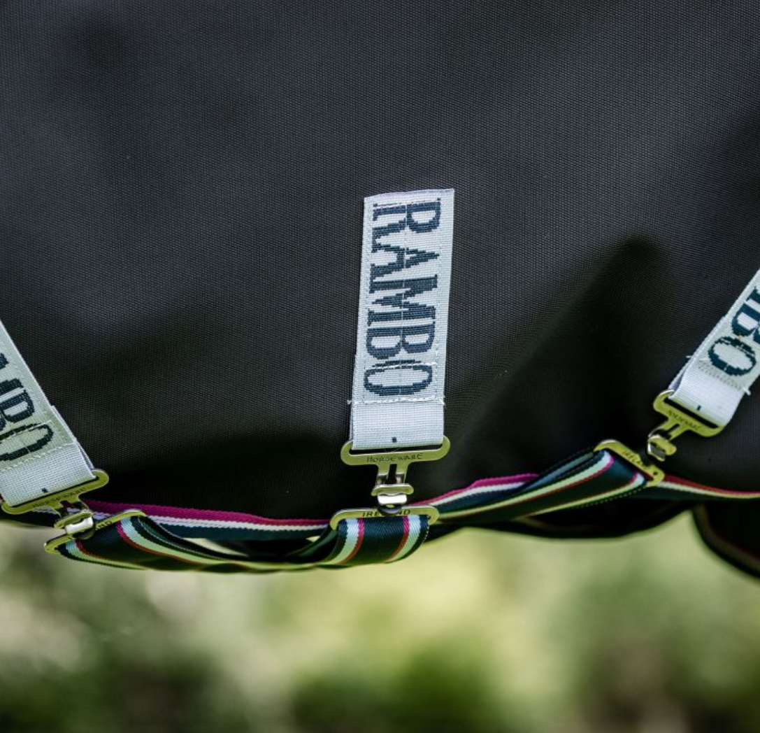 Rambo Supreme er et yderst velsiddende dækken som ligger godt og ikke hele tiden skal rettes på plads. Inderforet er glat, hvilket forebygger slidmærker i pelsen. Dækkenet har v-front lukning som fordeler trykket behageligt over hestens skuldre og dette kombineret med gode benudskæringer sikrer hesten optimal bevægelsesfrihed på folden. Rambo Supreme lukkes med tre gjorde. Gjordene er monteret med sikkerhedsringe, som kan udskiftes, hvis hesten hænger fast og ringene springer.