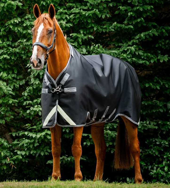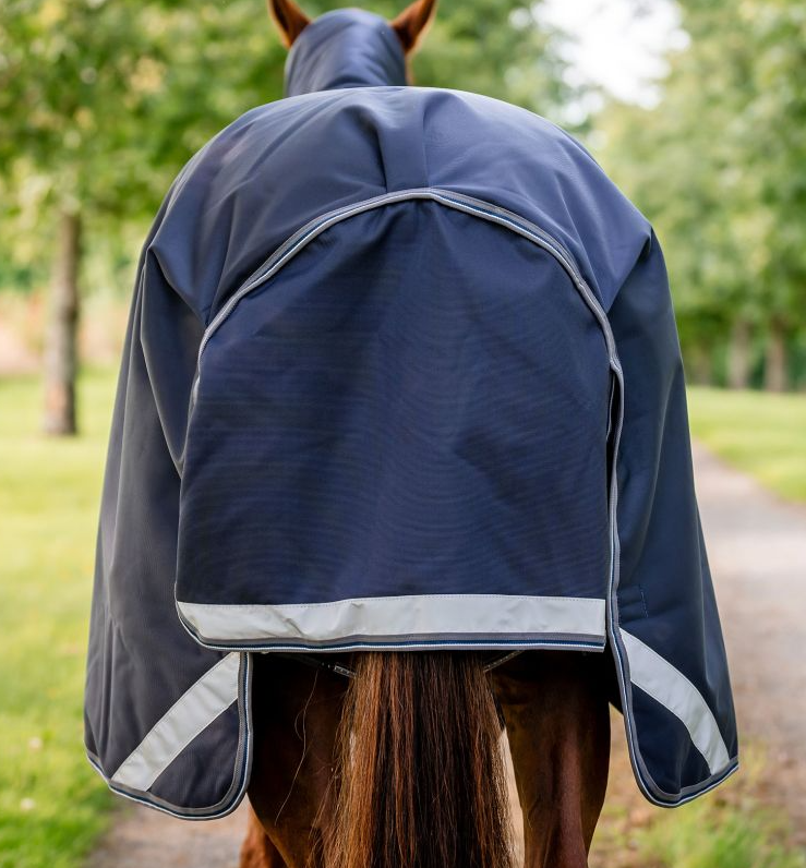 Der er refleksdetlajer på dækkent som også har Rambo® Safety Surcingle System som er sikkerhed ved gjordene, hvis hesten hænger fast. Halestroppen kan rengøres og der kan sættes hals på dækkenet (medfølger ikke) lige som man kan sætte benstropper på (medfølger ikke).