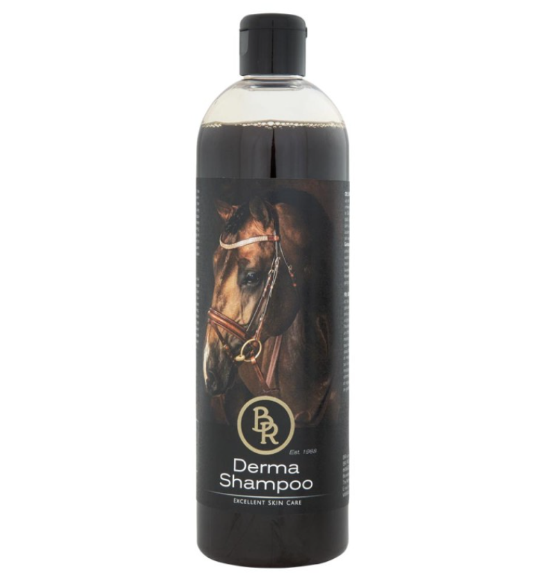 BR Derma Shampoo med tjære og tea tree olie - denne shampoo er helt genial til heste med pelsproblemer eller irritationer. BR Derma Shampoo renser og har en beroligende effekt på huden. Plejeshampooen er specielt udviklet til heste med eksem eller sensitiv hud. Den kan også anvendes forebyggende på heste med sæsonbestemte hudproblemer. Derma shampooen virker også ekstremt godt på områder der er sårbare grundet hestens sved, som kan være svær at fjerne. For eksempel ved hudfolder.