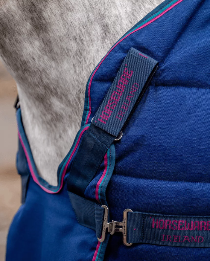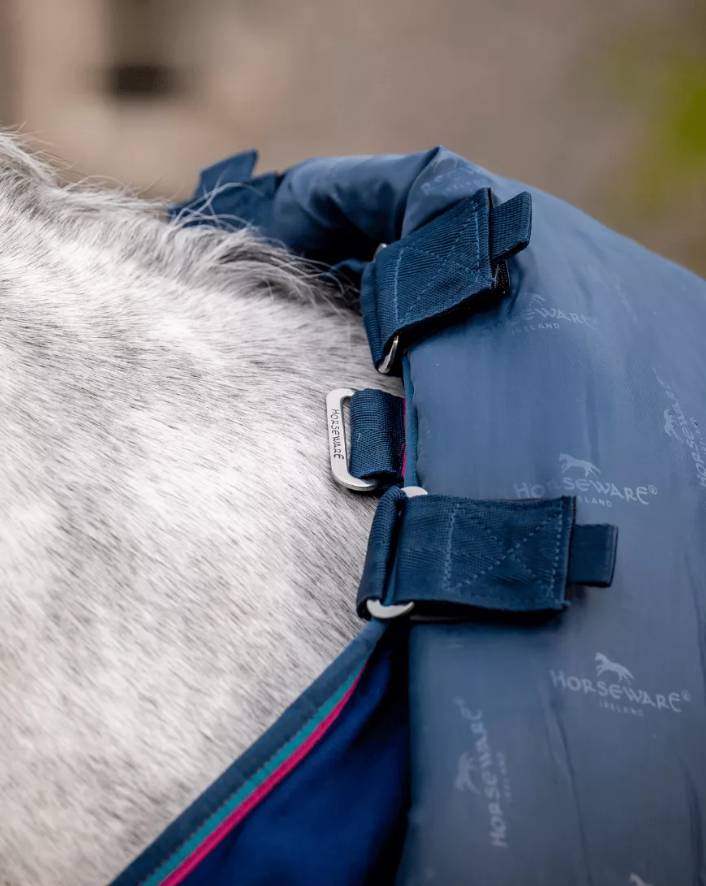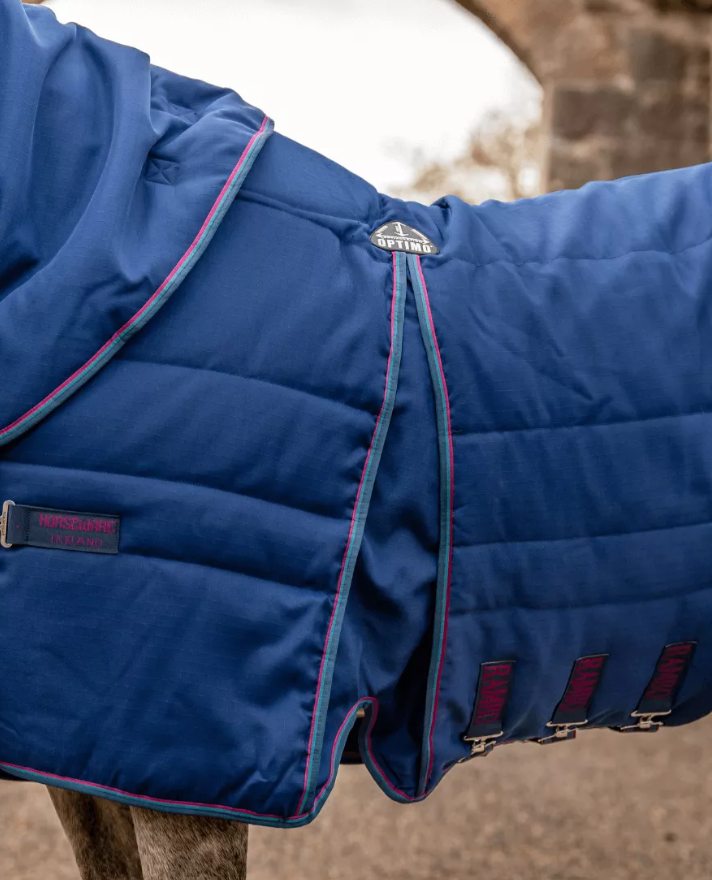 Optimo stable rug 200 gram kan isættes Optimo liner, så det nemt kan gøres endnu tykkere. Der medfølger aftagelig hals til dette dækken.