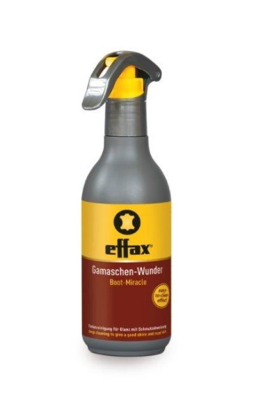 Denne spray bruges på kunststof til at rengøre og gøre materialet smudsafvisende. En handly sprayflaske så du nemt kan rengøre gamacher og lignende. Effax HorseBoot Miracle beskytter desuden mod snavs, fugt og slidtage.