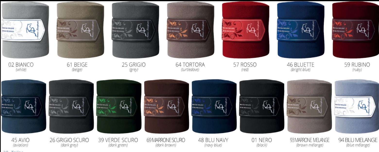 Anna Scarpati Weo Polo Horse fleece bandage: Virkelig lækre fleece bandager fra italienske Anna Scarpati (ASUP). Der er 4 i et sæt og der er mange forskellige farver - husk også, at der kan designes underlag fra Anna Scarpati i mange forskellige designs. Længde på bandager 350 cm/højde 12 cm.
