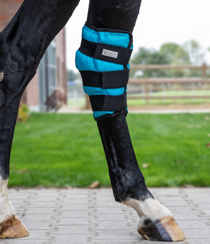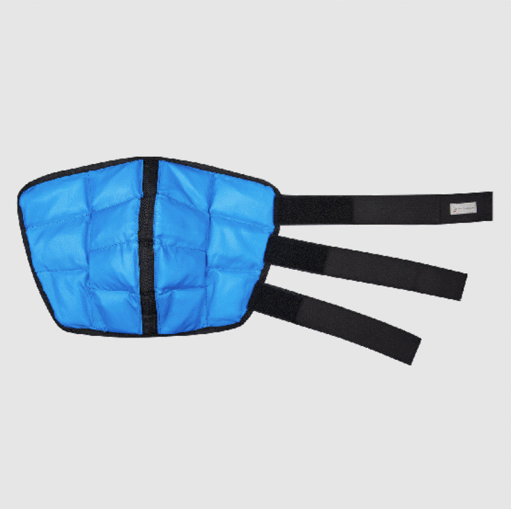 Cooling boot fremstillet i solidt materiale med mange små inddelinger som sikrer at den køler godt og sidder godt. Sættes nemt på og lukkes til med velcro. Disse kølegamacher placeres i fryste eller på køl inden brug.