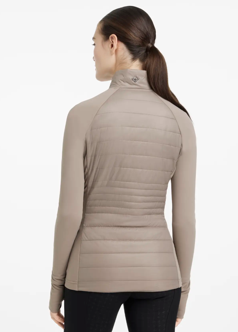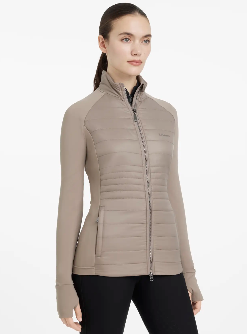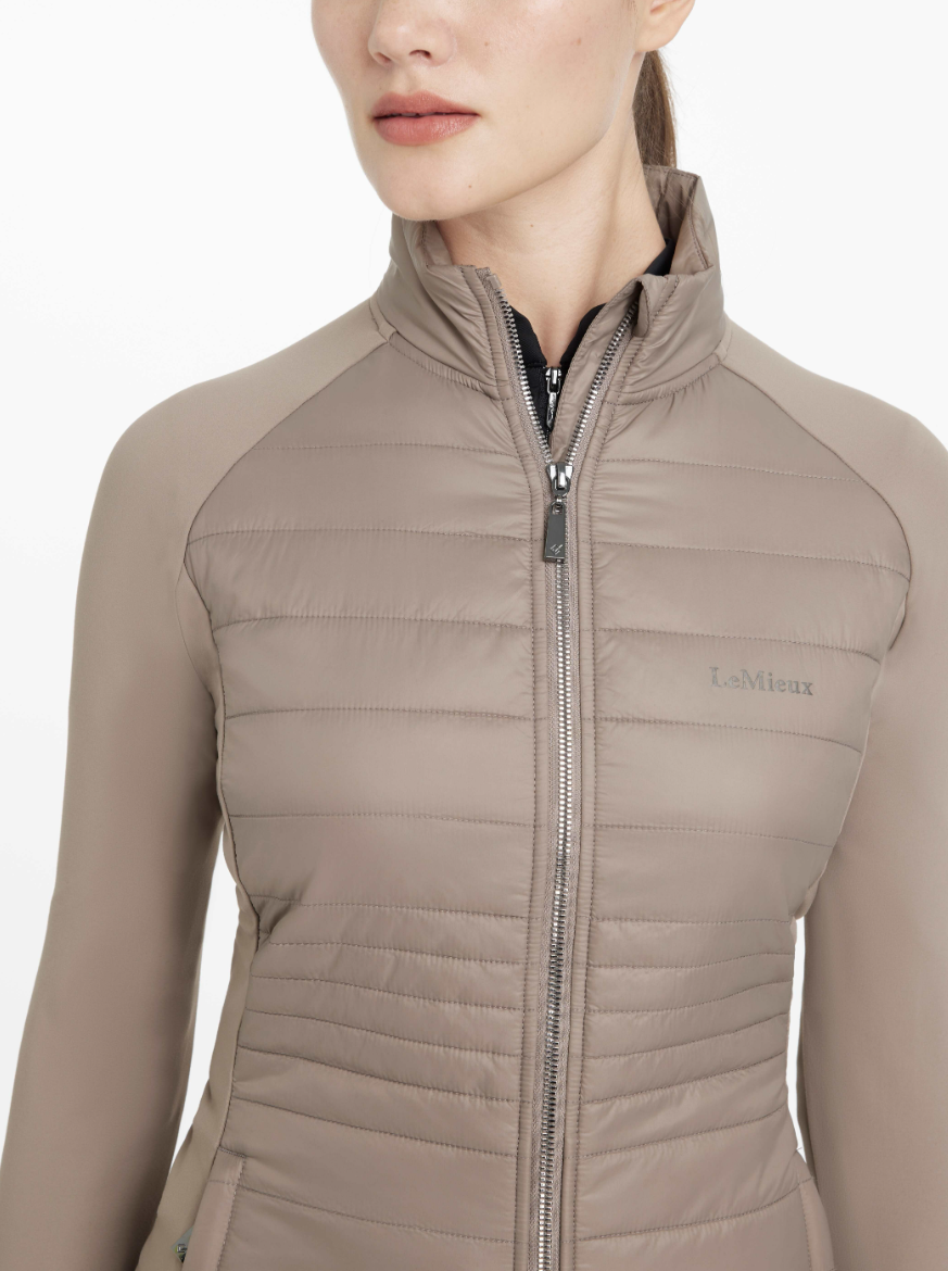 En sand klassiker: LeMieux Juliette er en super lækker hybridjakke med kviltet, let og lunt materiale i ryg og foran og med elastisk softshellmateriale i ærmer. Denne jakke er designet til brug under tykkere frakker og jakker. Den sidder godt og er vindafvisende, så den kan også bruges de varme måneder som en let jakke. En hybridjakke som denne er uundværlig som rytter - men da den er åndbar og velsiddende kan den også være et hit til andre udeaktiviteter som golf, gå- eller løbeture. LeMieux er god kvalitet og har gode lynlåse både til lukning af jakken foran samt lynlåslommer af god kvalitet.