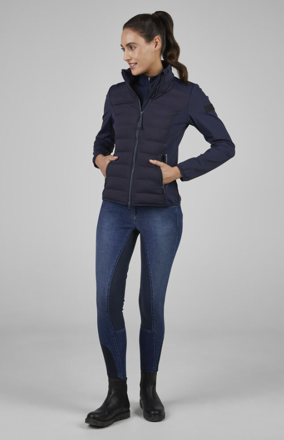 Tysk kvalitet du ikke bliver træt af: Pikeur Sports hybrid jakke er en klassiker fra PIkeur. Her får du en lækker overgangsjakke i et vandafvisende materiale. Foran og bagpå er jakken med kviltet materiale og lunt for. Ærmer og ned langs taljen er materialet høj kvalitet softshell også med vandafvisende yderside. Jakken er let og giver masser af bevægelsesfrihed. Mange måneder kan du bruge den som din foretrukne jakke og bliver det rigtig koldt, så fylder den ikke mere, end den kan være inden under den varme tykke jakke eller frakke.