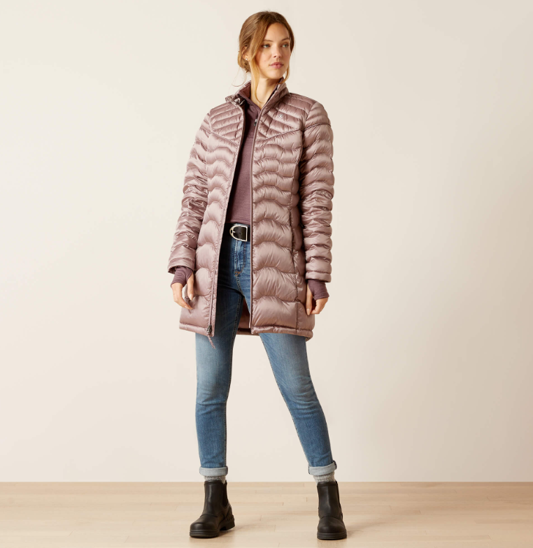 Ariats Ideal jakker og veste har længe været meget populære, så mon ikke også, at denne lidt længere variant bliver taget godt imod. Ariat tilbyder meget lækre dunjakker af god kvalitet - de er smarte, lette og varme. Skulle isvinteren virkelig sætte ind så fylder denne frakke ikke mere end man kan have den INDE under en varm frakke for at give lidt ekstra kropslune.