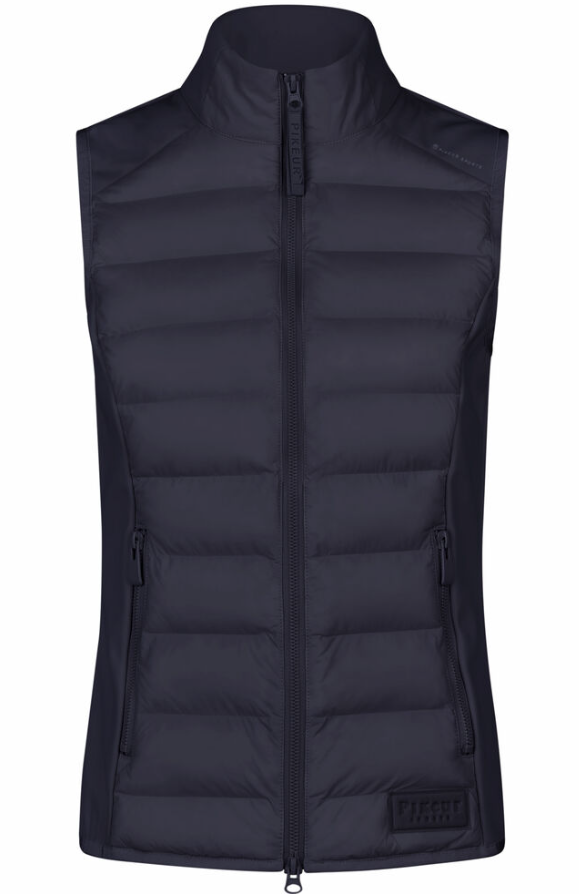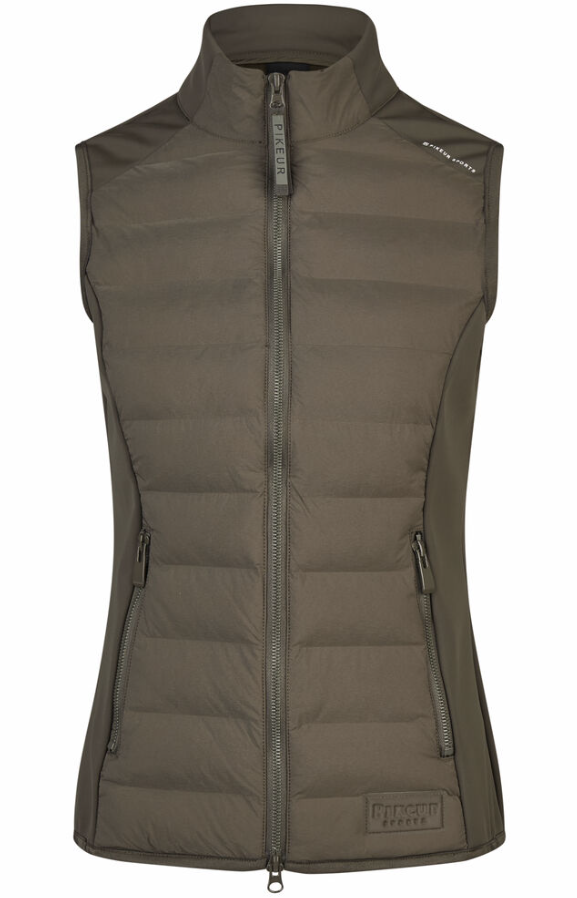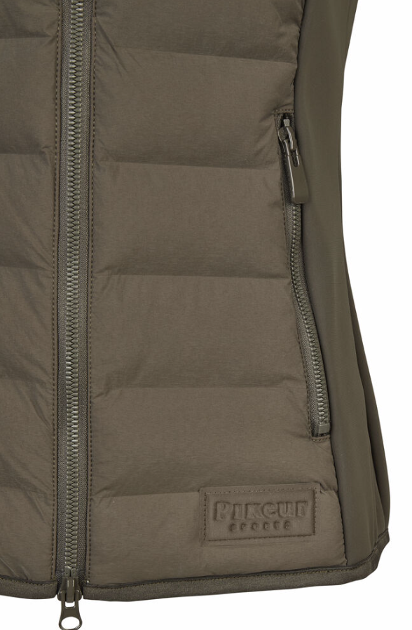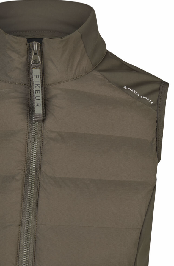 PIkeurs klassiske hybrid vest går aldrig af mode. Super lækker og velsiddende, og så er den anvendelig året rundt. Uundværlig i de kolde måneder. I år er vesten opgraderet med ekstra gode lynlåse og diskret logo. Vesten haves i traditionel mørkeblå samt en kollektionsfarve "Deep khaki". Den khaki farve er virkelig flot og passer til det meste. Vesten er kviltet foran og på ryggen i et robust og vandafvisende materiale. Siderne er et lækkert softshell agtigt materiale med ultra blød inderside. Vesten er faconsyet og sidder flot. Kan bruges lag på lag om vinteren, og i forår og sommermånederne sikrer den, at overkroppen holdes lun på de blæsende dage.