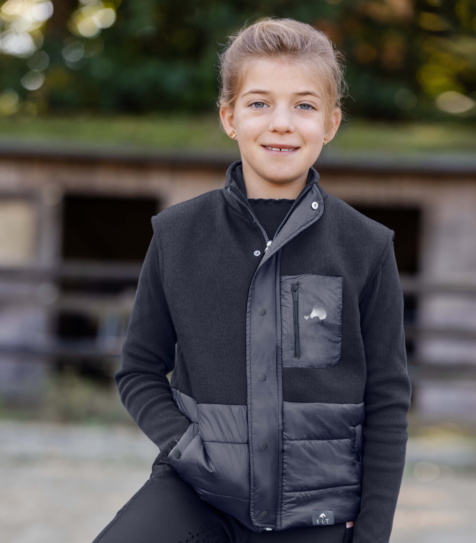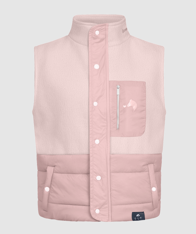 ELT Lucky Milu er en fin lille hybridvest med kombination af fleece og kviltet materiale. Et let og cute bodywarmer som holder overkroppen varm på de kolde dage. Blød og lækker vest til den lille rytter. Oplagt til rytteren som kan lide lyserød, men den kan også sagtens bruges til børnehave og skolebrug. Haves i lyserød og mørkeblå.