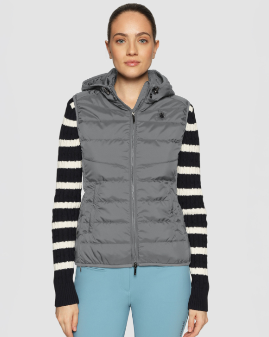Samshields populære vest Alta Badia i nye lækre farver Granit og Latte. En vest der kan bruges året rundt! Hætten kan lynes af og vesten er mindst lige så pæn uden. Det betyder også, at man nemt kan bruge vesten inde under sit overtøj. Om sommeren fungerer vesten som en let jakke sammen med en strik eller fleece. En virkelig anvendelig vest og så er den både flatterende og elegant at se på. Den er foret med Samshields DuPont Sorona® for som er blødt, varmt og let og fungerer som dun. Ydermaterialet er vandafvisende. En vest der er skabt til at blive brugt om det er til hest, i stalden eller på gåturen!