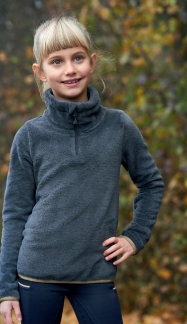Lækker blød teddy fleece til den unge rytter. Super lækker og blød. Lille kantebånd nederst samt for enden af ærmerne i guld - fin lille detalje.