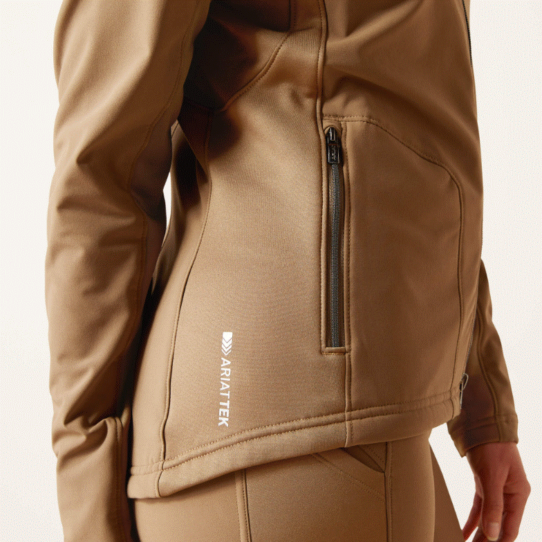 Ariat Boreas jakke er en super lækker funktionel sweatshirt type jakke med lynlås. Materialet er teknisk - en kombination af blødt og strækbart materiale samt et behageligt og strækbart vand- og vindafvisende materiale. Ariat Boreas er velsiddende og en super let jakke til kølige og blæsende dage. Boreas er vind- og vandafvisende og foret med lækker blød børstet fleece, som holder dig varm. Boreas er i stretchy og behagelig kvalitet og en overdel som giver masser af mulighed for komfort og bevægelighed i sadlen såvel som under staldarbejde eller anden motion.