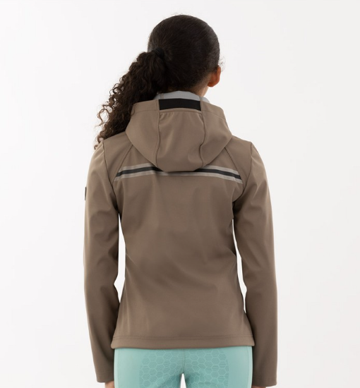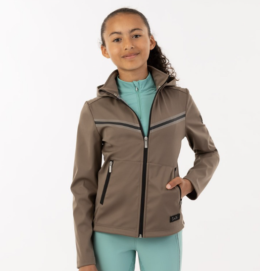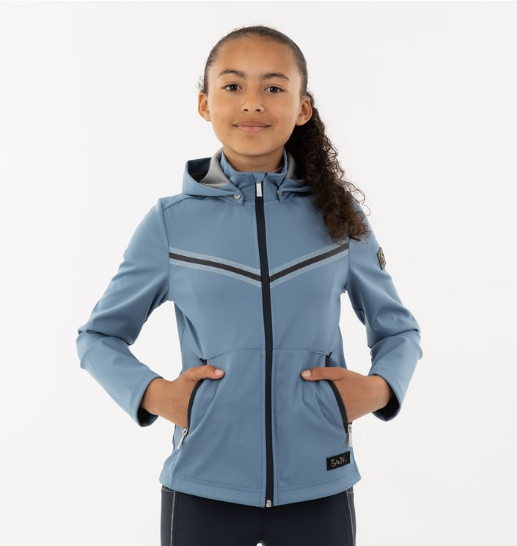 En sporty og lækker jakke til den unge rytter. En jakke i softshell kvalitet som er hurtigttørende og let at have på. Let faconsyet og velsiddende. Hætten er aftagelig. Lynlåslommer foran. En let jakke som kan fungere som skærm mod vejr og vind eller som sammen med en fleece eller strik vil være en godt lun jakke til køligere dage.