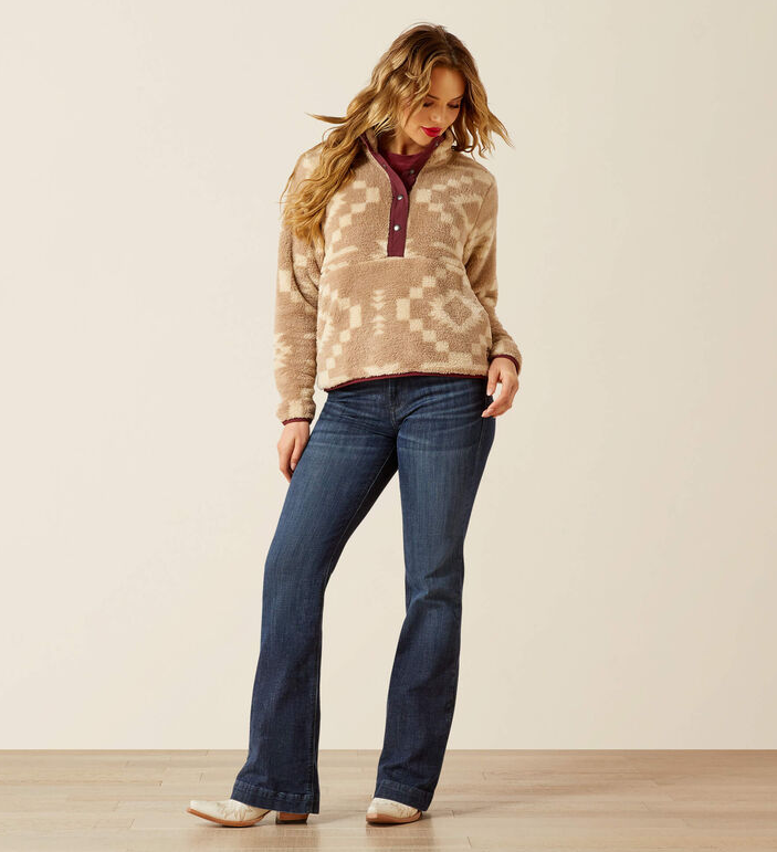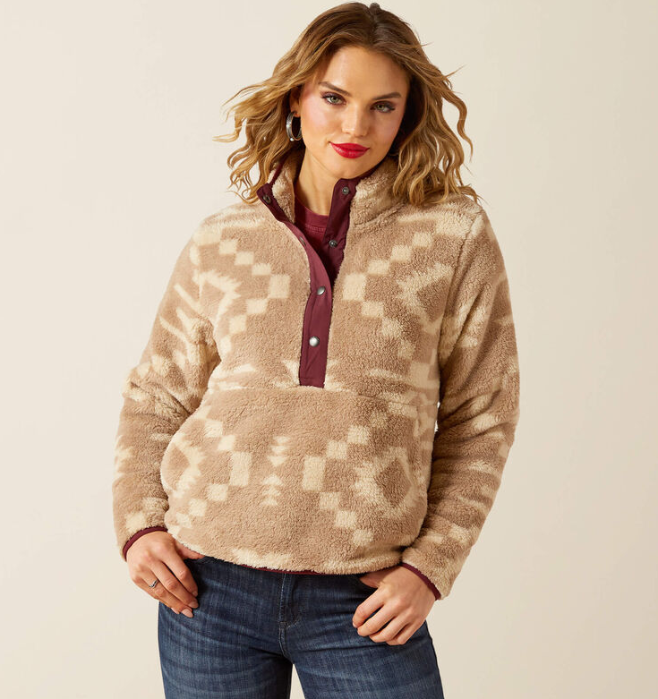 Ariats Berber sweatshirt i farven Lone Ridge print er så blød, at du ikke vil tage den af, når du først har fået den på. Materialet er en lækker kvalitetsfleece som er fluffy og super blød. Pasformen er lidt kort i det, så den er helt perfekt både til ridning, skiferie, gåtur, bytur- you name it. Det her er country-style som vil noget. Og så holder den sig flot selv efter vask.