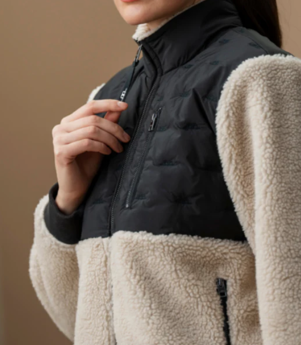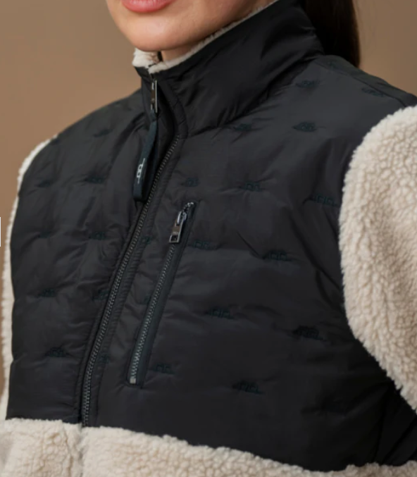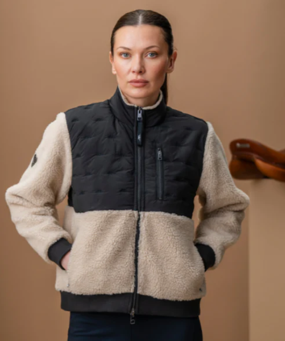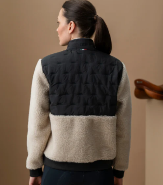 Lorenza hybrid fleece jakke i en blød og lækker shearling fleece med kviltet front og kviltet over skulderen. Farven er sand/sort og jakken kommer med en 2-vejs lynlås og tre funktionelle lommer. Det sorte kviltede materaiel er af ripstop kvalitet og virkelig holdbart. Her får du en super lækker hybrid jakke, som du får glæde af det meste af året. Alessandro Albanese er kvalitetsvarer oprindeligt baseret i Italien men nu under Horseware, så her har vi at gøre med et samarbejde som er meget optaget af både funktionalitet og kvalitet.
