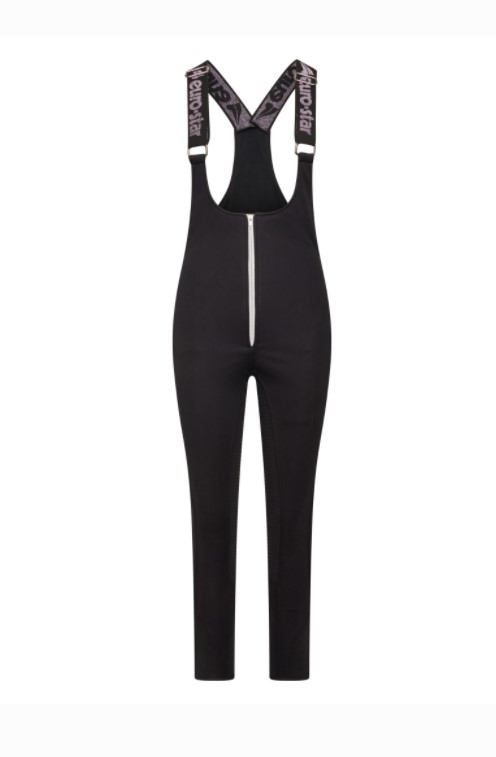 Med disse overalls vil ikke kun dine ben forblive varme i vinterkulden- ryg, lænd og mave er også beskyttet mod vejr og vind. Materialet er vand og smudsafvisende. Bukserne kan tages på udenpå almindelige ridebukser- eller blot med for eksempel gamacher eller lange underbukser under. Pasformen er god og bukserne holdes perfekt på plads af de to elastiske seler med euro-star logo i metalic tråd. Lang lynlås foran gør det nemt at hoppe i bukserne. God fullgrip.