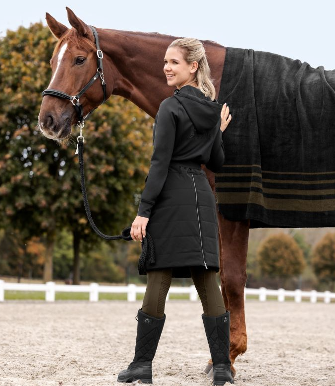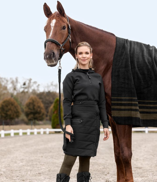 ELT Rachel er en kort termonederdel i kviltet materiale, som du kan bruge til at ride med. Nederdelen holder dig lun under opsadling, til staldarbejde og hvis du for eksempel skal undervise eller lufte hunden? Når du skal ride, så kan den lynes op bagpå, og så holder den dine lår varme under rideturen. Ydermaterialet er vand og vindafvisende. Taljen er elastisk. Refleksdetaljer gør dig mere synlig når mørket skrider frem.