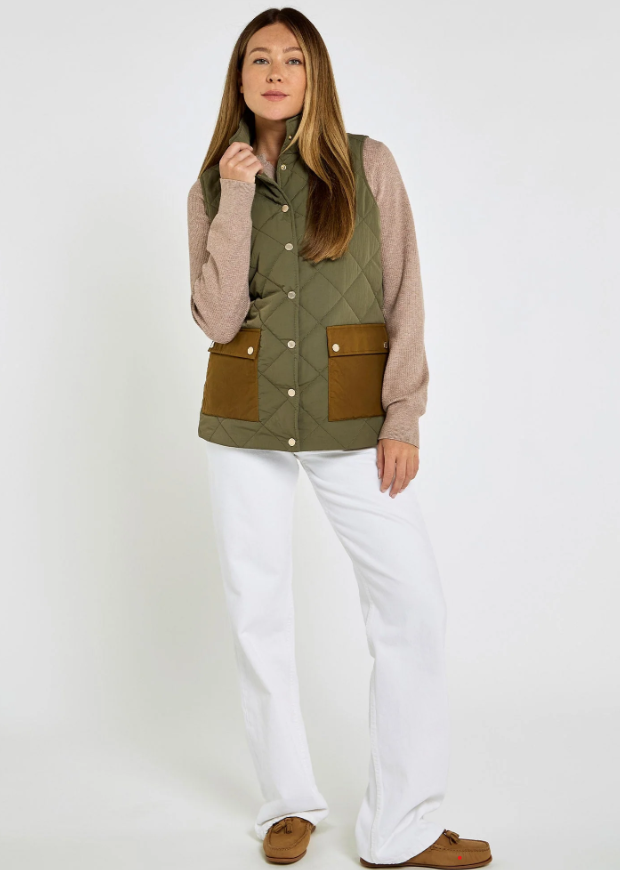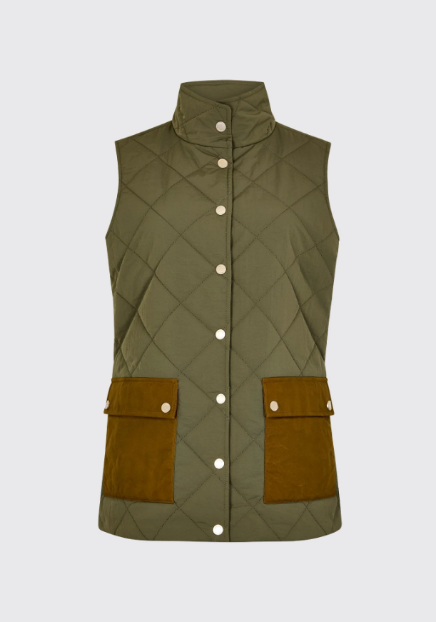 En enkel og lækker vest med et på een gang klassisk og meget moderne udtryk. Den enkle og praktiske country style er kommet for at blive, og med denne vest Dubarry Clashmore får du nærmest en håndfuld looks i en vest. Du kan bruge den med jeans, til jagtselskabet, til hest, gåtur med hunden og endda på cafe hvis du styler den rigtigt. Et lækkert look og Dubarry laver som altid god kvalitet. Den er ikke slim men har det lidt mere moderne "boxy" look omd end den stadig er faconsyetgilet. Lommerne er af super Halley Stevenson oilskind som giver et ekstra lækkert touch til denne vest. Forår-sommer-efterår-vinter. Du kan bruge den året rundt!