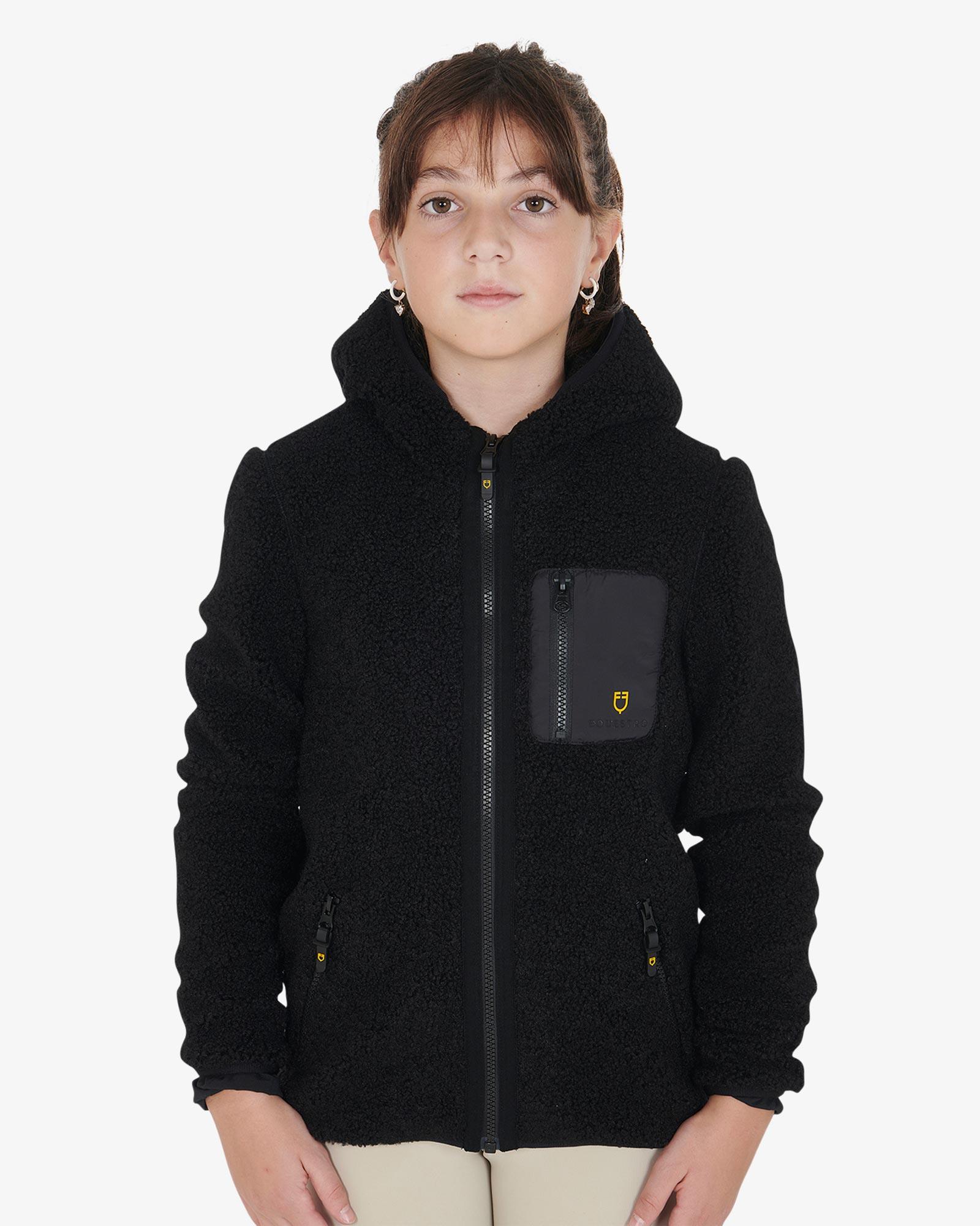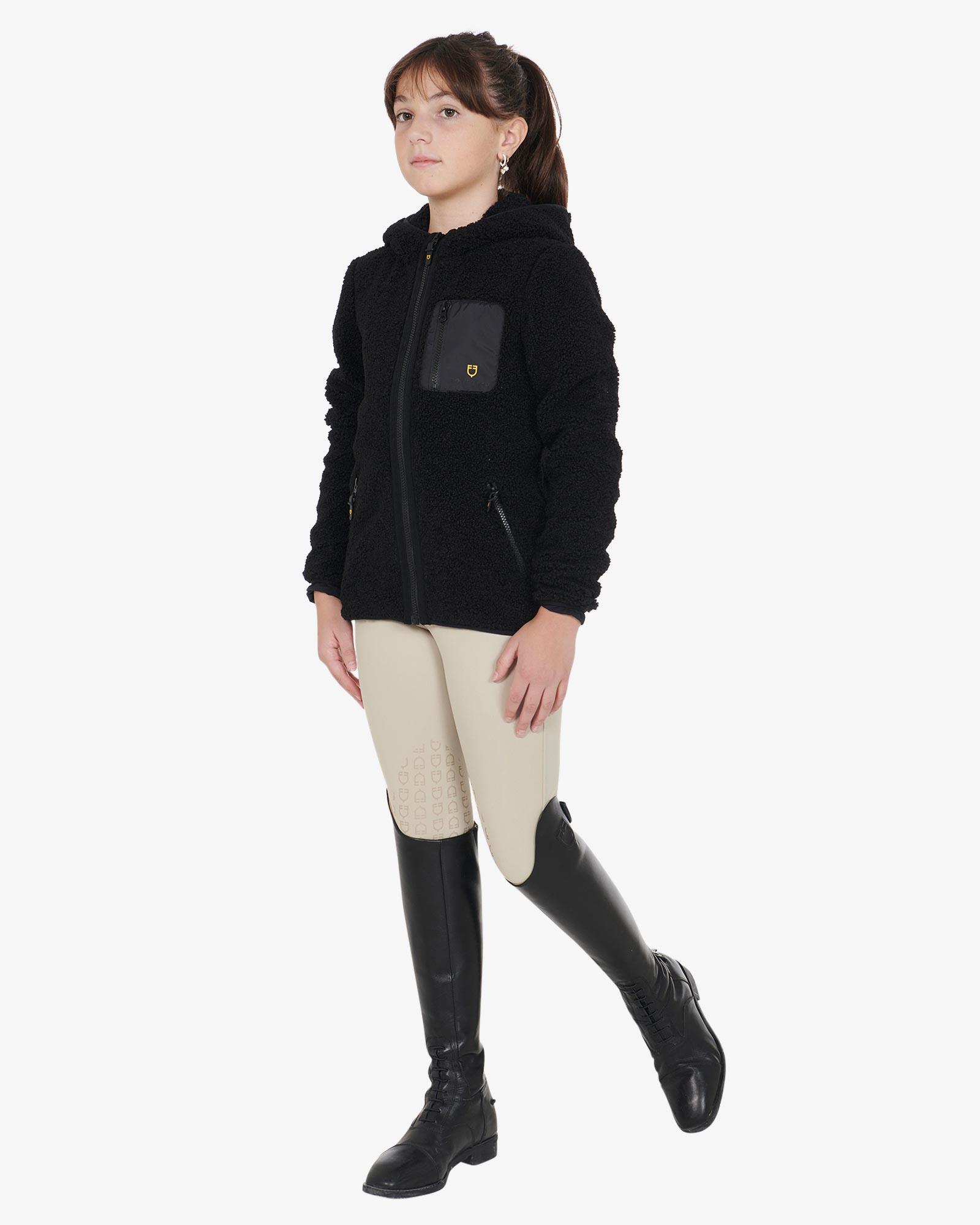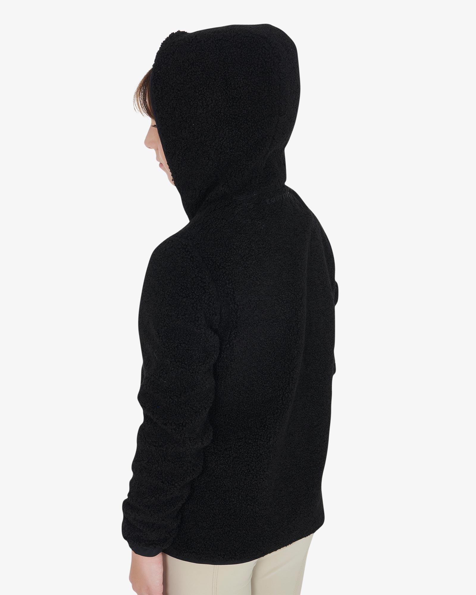 Equestro teddyfleece med lynlås helvejslynlås og hætte. Den ultimative sweatshirtjakke til den unge rytter, der vil undgå at fryse med stil. Jakken er både varm og rar at have på med termisk insulering og krave, der går op og beskytter mere mod kulden. Den er ligeledes åndbar, så den giver et optimalt indeklima, mens den holder dig varm.