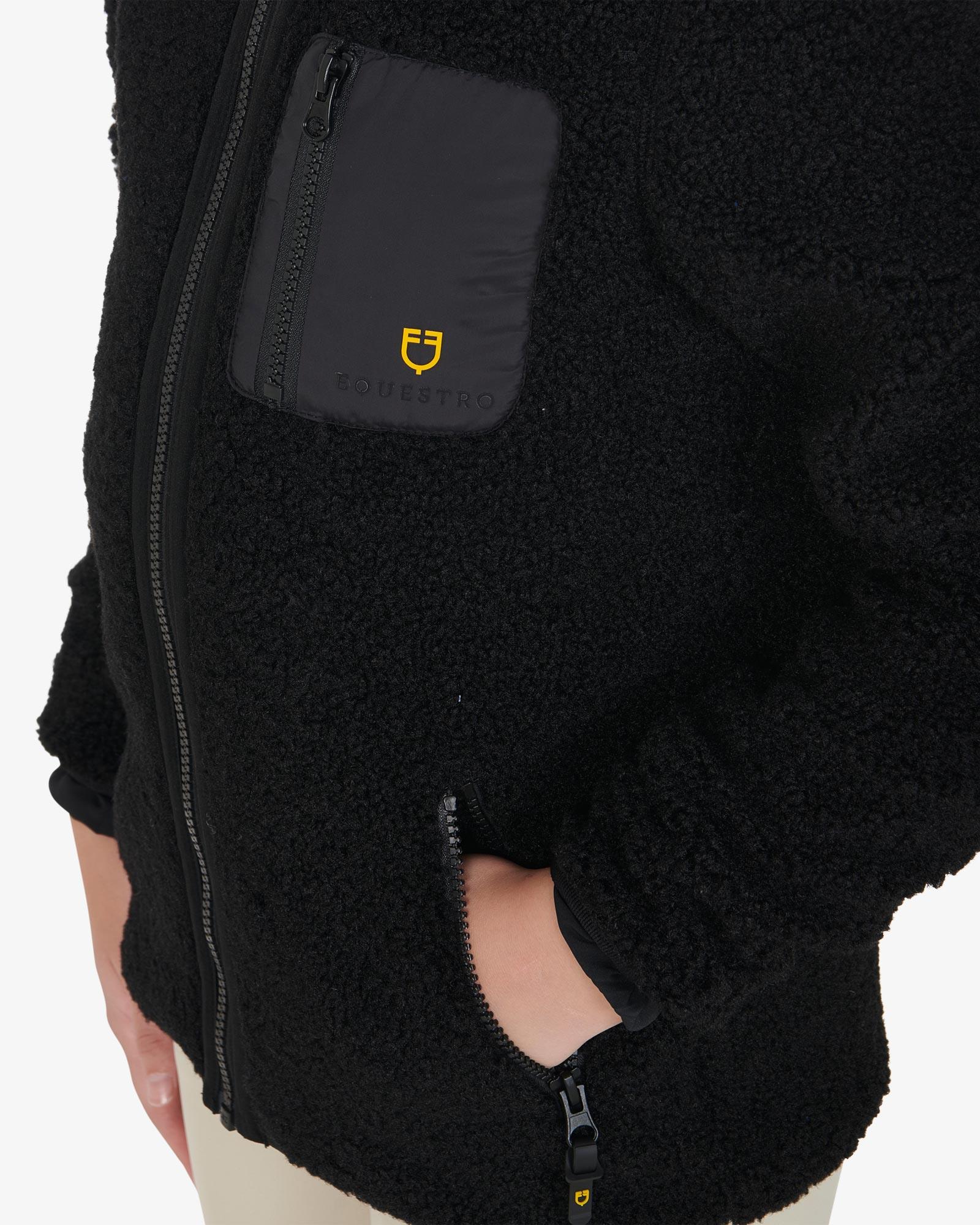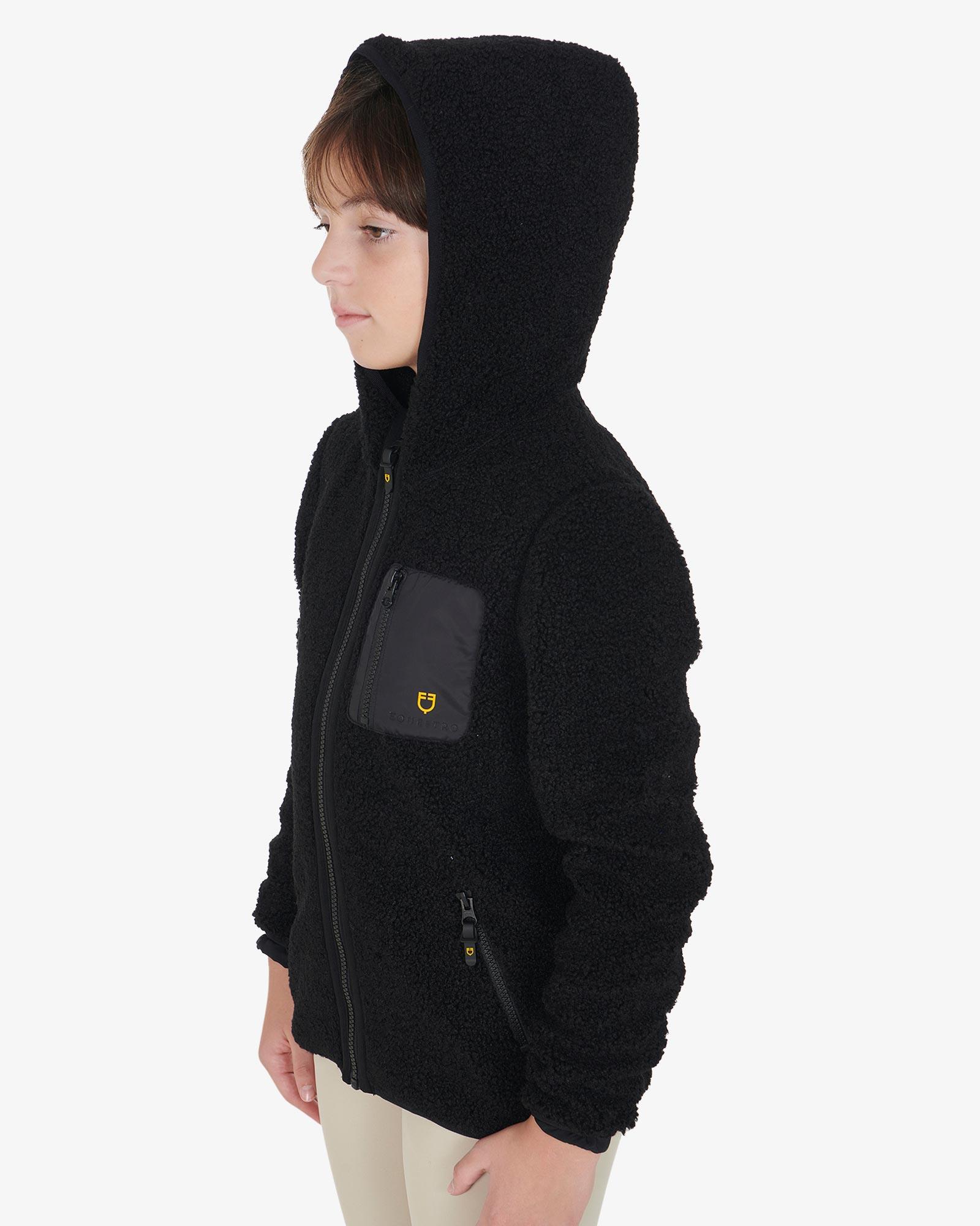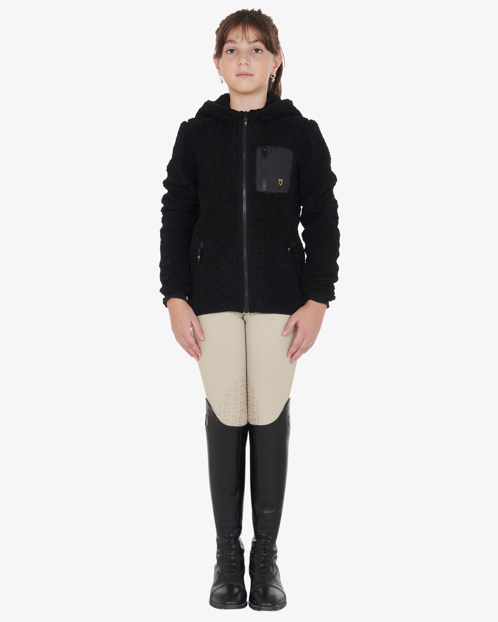 Equestro teddyfleece med lynlås helvejslynlås og hætte. Den ultimative sweatshirtjakke til den unge rytter, der vil undgå at fryse med stil. Jakken er både varm og rar at have på med termisk insulering og krave, der går op og beskytter mere mod kulden. Den er ligeledes åndbar, så den giver et optimalt indeklima, mens den holder dig varm.