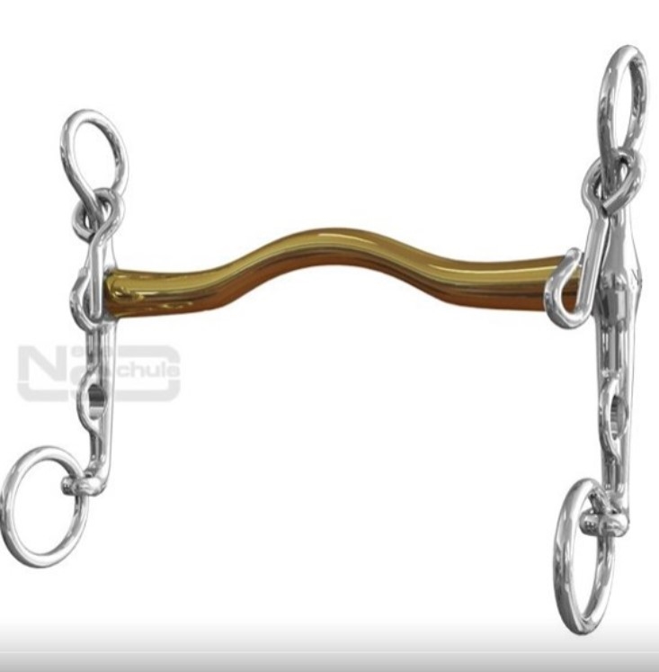 Neue Schule Slimma Weymouth er fremstillet i materialet "Salox Gold" som er en blanding af messing/aluminium det blandt andet gør at biddet varmes hurtigere op i hestens mund.