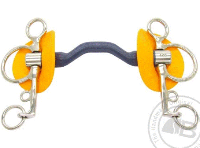 Bombers pelham med babystænger og stang i Bombers blå specielle materiale som ikke er metal. Dette bid er designet så man kan vælge at ride med to tøjler eller bruge pelhamstrop/deltatøjle. Udformningen af stangen er god til heste som ikke har så meget plads i munden. Bomber blue materialet er et unikt materiale som har vist meget positive effekter hos hestene. Stangen er buet for at give plads til tungen. Materialet er et nylon komposit materiale som er let og tilskynder hestens spytproduktion. Dette er et godt alternativ til heste som ikke bryder sig om metalbid i munden.