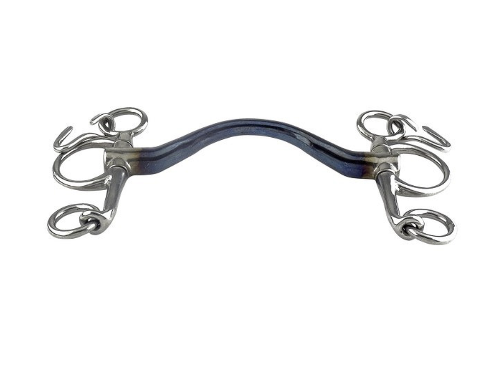 Trust Sweet Iron baby pelham med medium port. Sweet Iron ruster når det kommer i kontakt med fugt: overfladen smager sødt og stimulerer hestens naturlige spyt produktion. Dette får hesten til at skumme og det forbedrer dens accept af biddet og hjælper rytter og hest til en bedre kontakt. Oxidering ændrer farven på Trust bid i Sweet iron fra blå til mere brunlig grå efterhånden som biddet ruster. Et Sweet Iron bid får et orange-brunt rust lag på bidstykkerne, hvis biddet i en periode ikke anvendes. Dette kan man fjerne ved at tørre det af med en fugtig varm klud.