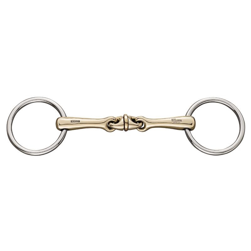 HS Sensogan WH ULTRA bridon bid med midterstykke der kan dreje 45° er et mild men effektivt middel til at kommunikere med hesten. Dette bridon bid fra HS er unikt med den "rullende" midte som kan bidrage til at hesten fokuserer bedre. Midterstykket påvirker tungen på en måde som mildt stimulerer hesten til at fokusere. HS Sensogan WH Ultra bridon biddet her har vist sig til at hjælpe hesten med at fokusere på tungen og forhindre den i at blive distraheret af andre ting så den koncentrere sig mere og responderer bedre på hjælpen og signalerne fra tøjlerne. 14 mm.