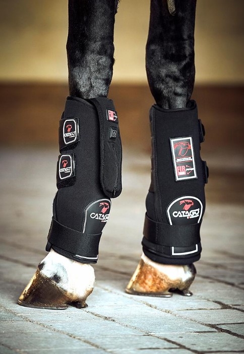 Det anbefales, at gamachen ikke strammes hårdt om hestens ben. Materiale: Ydre materiale 100% polyester. Vattering: Synthermax fiberfyld. Foer: polyester med keramisk ler (70%)