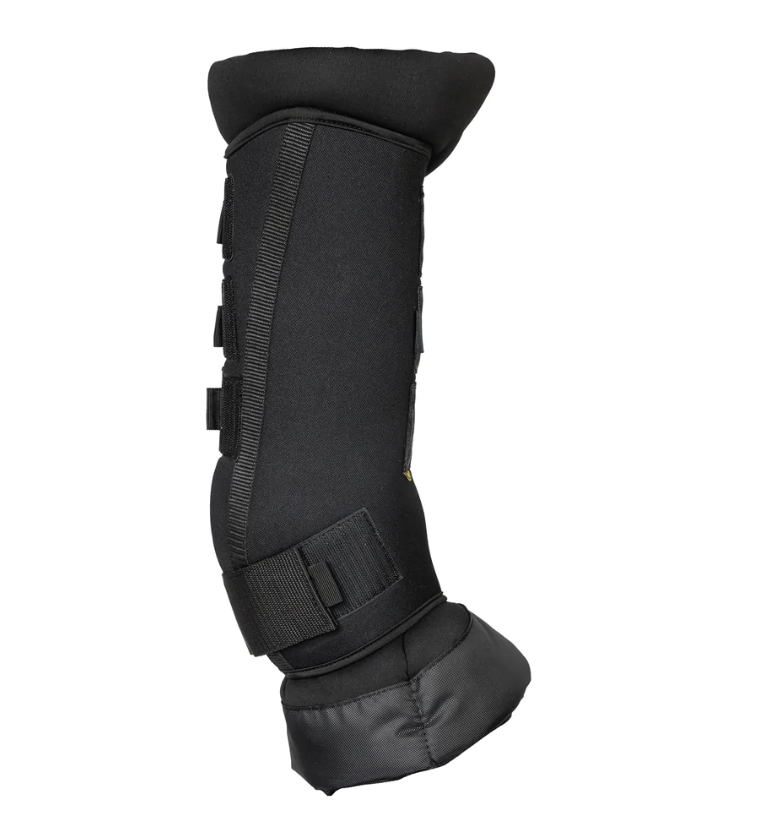 Deluxe staldbandagen består af to dele, et slidstærkt og slidstærkt yderbetræk og en tyk inderpude med Welltex®-teknologi. Royal Deluxe modellen er anatomisk formet for den bedst mulige pasform og komfort. De er bløde og går let udad i toppen for at minimere presset på senen og give øget bevægelsesfrihed til hestens ben.