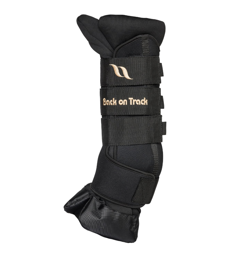 Den indvendige pude har det virksomme Welltex® teknologi, som kan lindre ubehaget hos heste med sene-, led- og ledbåndsproblemer. Staldbandagen kan bruges til forebyggelse eller som genopretning ved problemer med gigt, betændelse, hævelser eller galde. Mange anvender Back on Track staldgamacher til transport, og her lyner den nye Deluxe version, idet den er mere praktisk og ikke suger så meget vådt til sig.