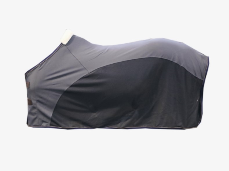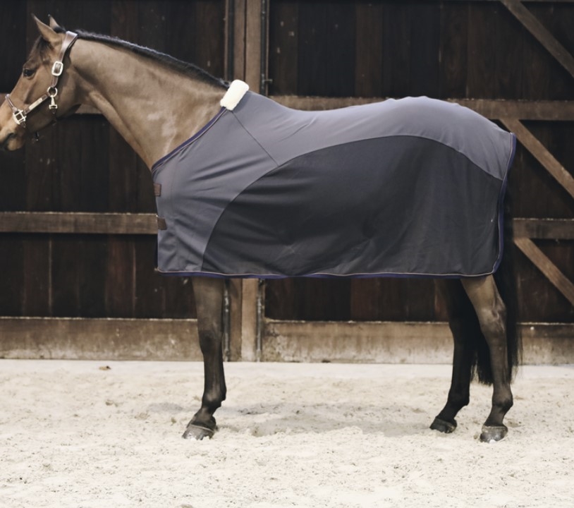 Din hest vil ELSKE dette dækken: Kentuckys Cooler Sheet Softshell er virkelig lækkert og eksklusivt. Det ideelle dækken til stald, stævner og transport. Kentuckys Cooler Sheet Softshell er specielt designet til at beskytte hesten over ryggen mod kold vind og kulde - dækkenet føles som det populært kaldes som "a second skin" da det er så blødt og komfortabelt. Det er meget åndbart og derved ekstremt behageligt for hesten under transport eller i stalden hvis temperaturen for eksempel skifter. På undersiden er et mesh materiale som er yderst åndbart og holder insekter og fluer væk. Der er imiteret lammeskind ved mankestykket for at beskytte mod slid og tryk. Dækkenet har dobbelt spænder foran som sammen med den stærke velcro sikrer god lukning ved bringen. Dækkenet har to krydsgjorde, som er aftagelige. Der er masser af lækre detaljer på dette dækkenet med Kentuckys kendte imiterede læder. Dækkenet kan vaskes ved 30 grader.