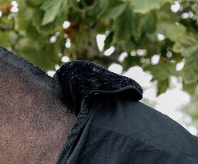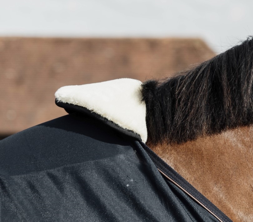 Kentucky Horse Bib Wither Protection Sheepskin er beskyttelse til din hest i mankestykket, hvor den ofte kan blive slidt/trykket af dækkenet. Denne "Bib" foldes på inderside og yderside af dækkenet og beskytter mod slid og tryk. Anatomisk udformning sikrer at denne "Bib" bliver siddende hvor den skal. Kan anvendes i stald og under transport. Imiteret lammeskind samt memory foam fyld sikrer optimal komfort.