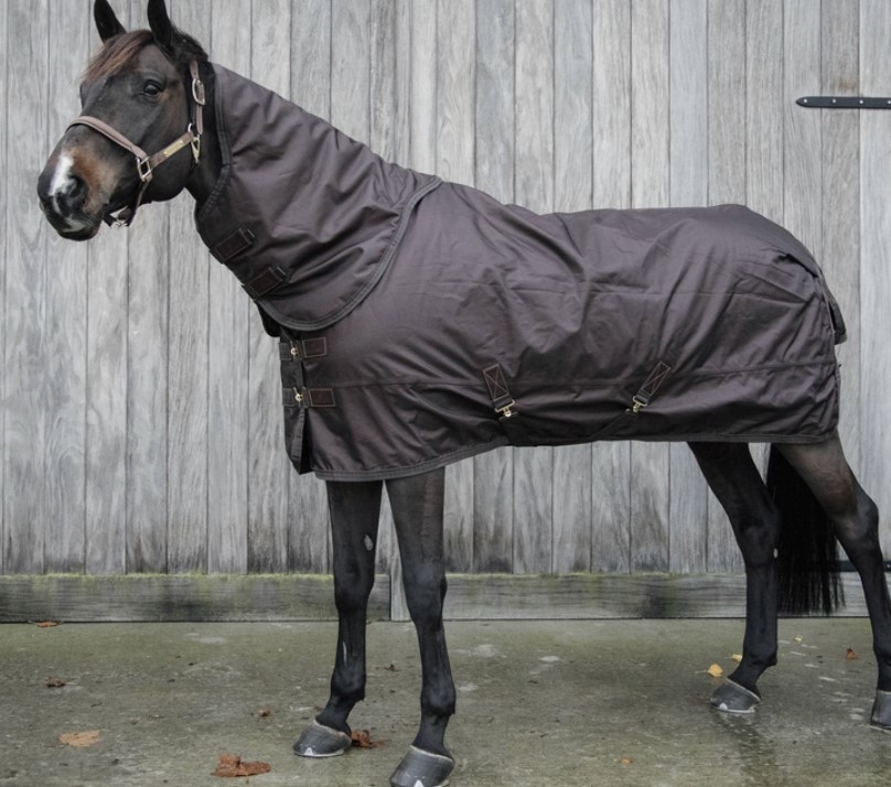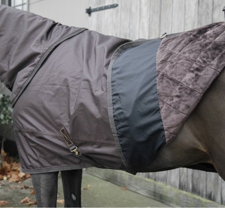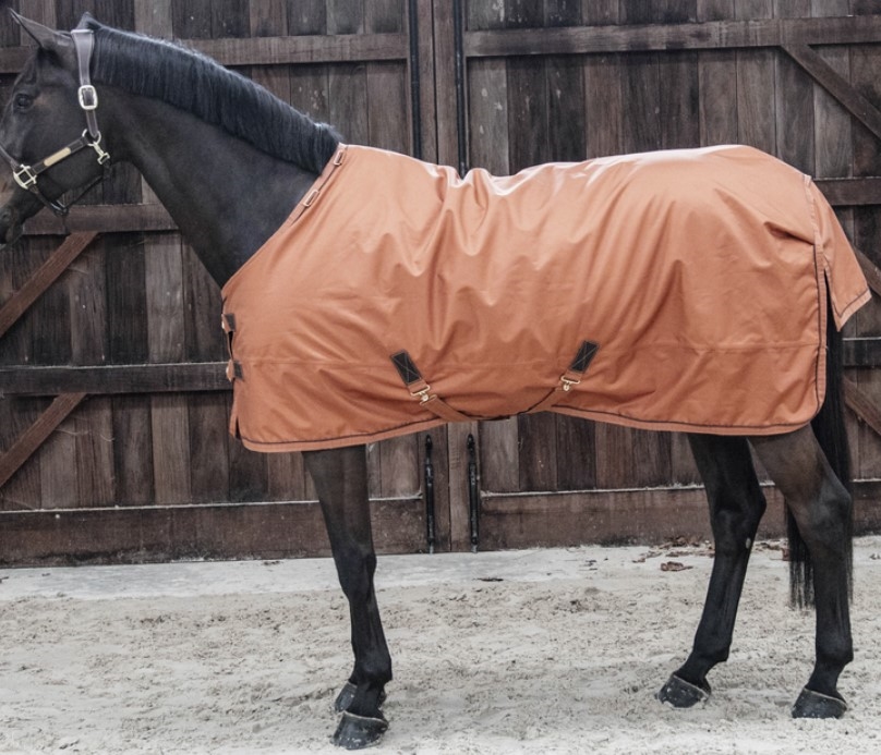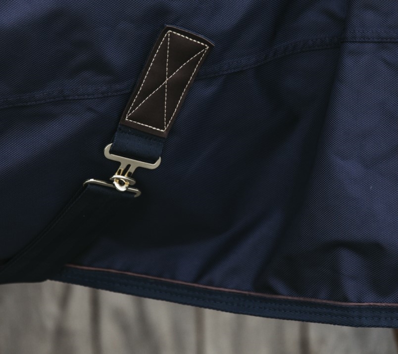 Dette dækken har flotte brune detaljer med imiteret læder giver et eksklusivt look. Derfor kan dækkenet også sagtens anvendes som stævnedækken, da det er velegnet til stævnestalden som jo ofte er en teltstald, hvor et varmt dækken der er åndbart og vandtæt er optimalt.