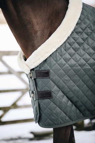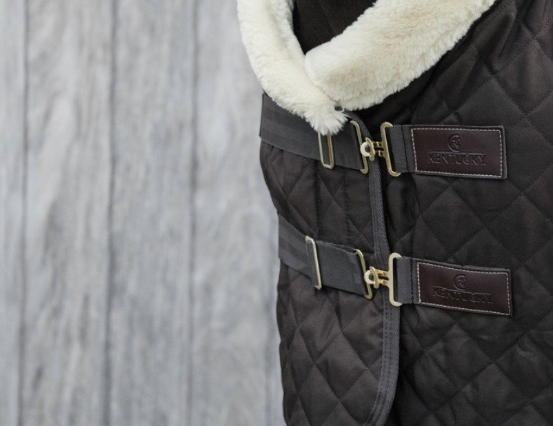 Kentucky Show Rug er et helt formidabelt dækken til din hest eller pony. Kentucky Show Rug dækkenet har det blødeste imiterede lam i hele halsudskæringen og undersiden er lavet af imiteret kaninskin. Det imiterede kaninskin er ultra blødt og slider ikke på hesten. Kentucky Show Rug har den særlige effekt grundet det imiterede kaninskind at der dannes små luftlommer som indfanger og holder på hestens egen kropsvarm. Kentucky Showrug er åndbar og takket være den bløde imiterede kaninpels bliver hesten mere skinnende. Kentucky Show Rug er på 160 g og fås fra str 125 cm - 160 cm. Men dækkenet fungerer faktisk meget af vinteren, da det virker varmere end de 160 g indikerer. Det er åndbart og kan også bruges når det er knapt så koldt.