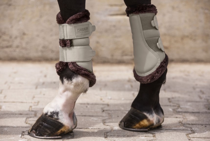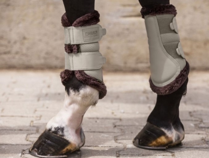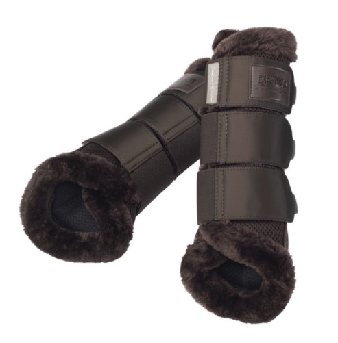 Eskadron Tendon Boots Mesh Fauxfur Platinum 20 - de skønne mesh gamacher med imiteret lam som pynt og mesh på indersiden er altid populære i Platinum kollektionen. Denne gang er farverne også ekstra flotte. Det imiterede lam er flot brunt og farverne i Eskadrons Platinum 2020 kollektion er virkelig smukke. Billedet præges af brune og beige nuancer peppet op med en flot støvet "vintage blue".