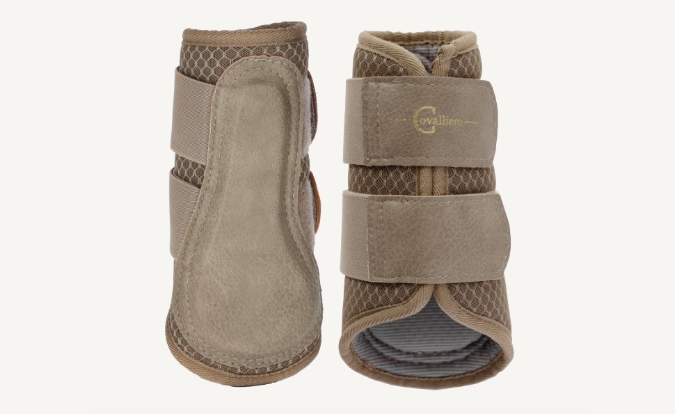Covalliero Mesh Soft Gaiters SS23 - limited edition. Disse lækre mesh gamacher er hurtigttørende og med åndbar mesh. Det er en velsiddende og solid gamache som beskytter hestens ben godt. Anatomisk udformet og med et look af nubuck.