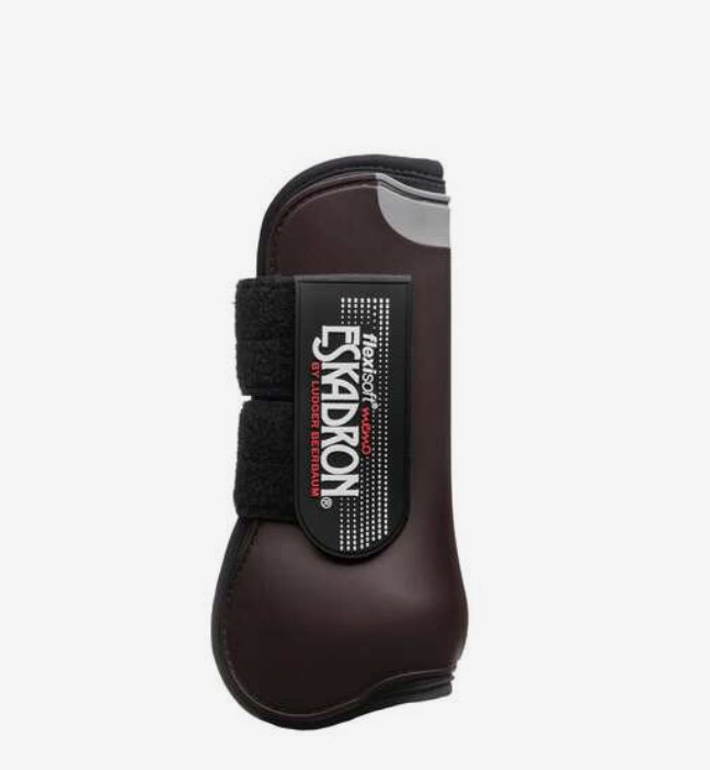 Eskadrons Flexisoft forbensgamashe er en anatomisk støbt gamashe som passer perfekt på hestens ben og yder rigtig god beskyttelse. Den er lavet af plast med neopren på indersiden. Øverst ved den grålige buede afmærkning på gamashen er "flexisoft-zonen" som er ekstra blød og bevægelig. Flexisoft gamashen er praktisk at rengøre og en stærk velcro lukning sikrer at den sidder godt. Flexisoft gamashen kan vaskes i maskine på 30 grader.