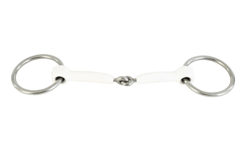 Trust materialet Inno Sense har i årevis været yderst populært hos hestene (og derfor også hos rytterne). Nu kommer det populære materiale på todelte bid. Her med almindelige løse ringe (små ringe som kan bruges til bridon eller som almindeligt bid). Bid med løse ringe tillader biddet at bevære sig frit og fleksibelt i hestens mund. Der er monteret bidskiver på dette bid, men de kan bare tages af, hvis man ikke vil bruge dem. Små ringe har en mere direkte indvirkning end større ringe, hvis man bruger biddet som almindeligt trensebid.