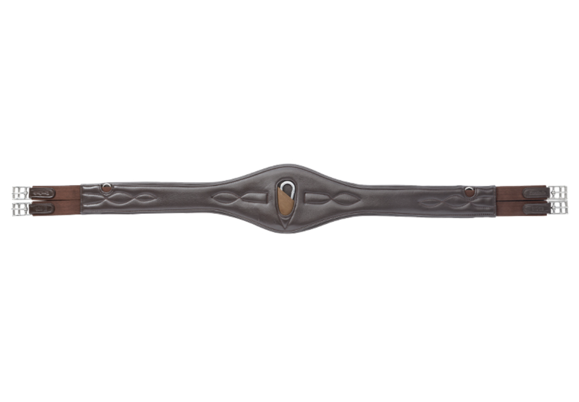 Kavalkade Comfort gjord - lang lædergjord i softlæder, som er virkelig behagelig for hesten både i design og materiale. Det bløde læder sikrer optimal komfort og bevægelsesfrihed. Materialet tilpasser sig hesten, selve gjorden er vegetabilsk behandlet blødt læder med nylon indvendigt og en ekstra bred kontaktflade i midten, som sikrer at pres og tryk fordeles. Der er elastik af god kvalitet i begge sider af gjorden samt karabinhage til at fastgøre fortøj, martinggale o.lign.