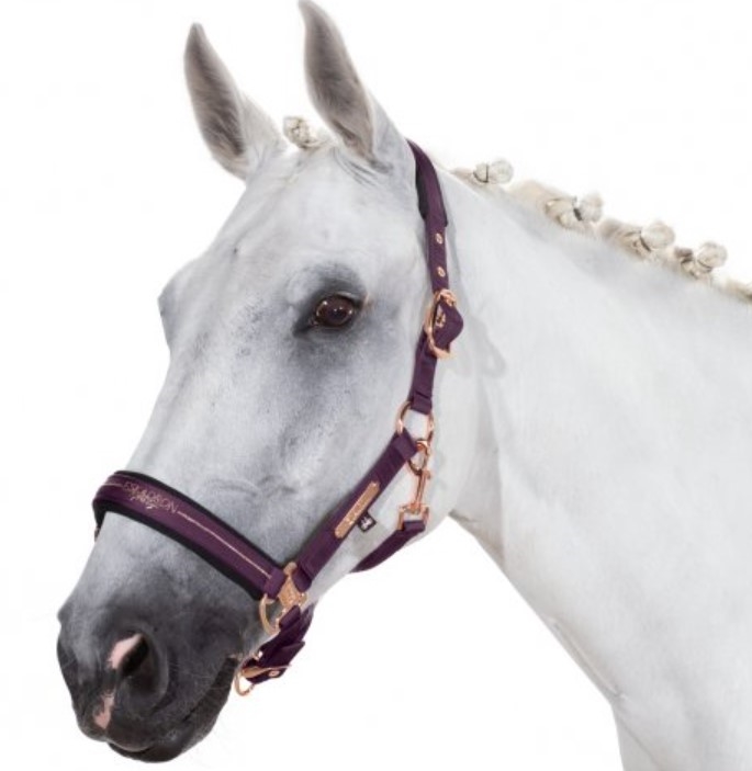 Eskadron Heritage Glossy grime med foring 20/21. Denne grime fra Heritage kollektionen er super lækker og behagelig for hesten grundet den gode foring. Grimen kan justeres i begge sider samt under mulen. Er du til rosegold? Så vil du elske denne grime som har rosegold spænder samt en fin glitrende rosegold stribe over næseryggen og flot Eskadron rosegold skilt på siden.