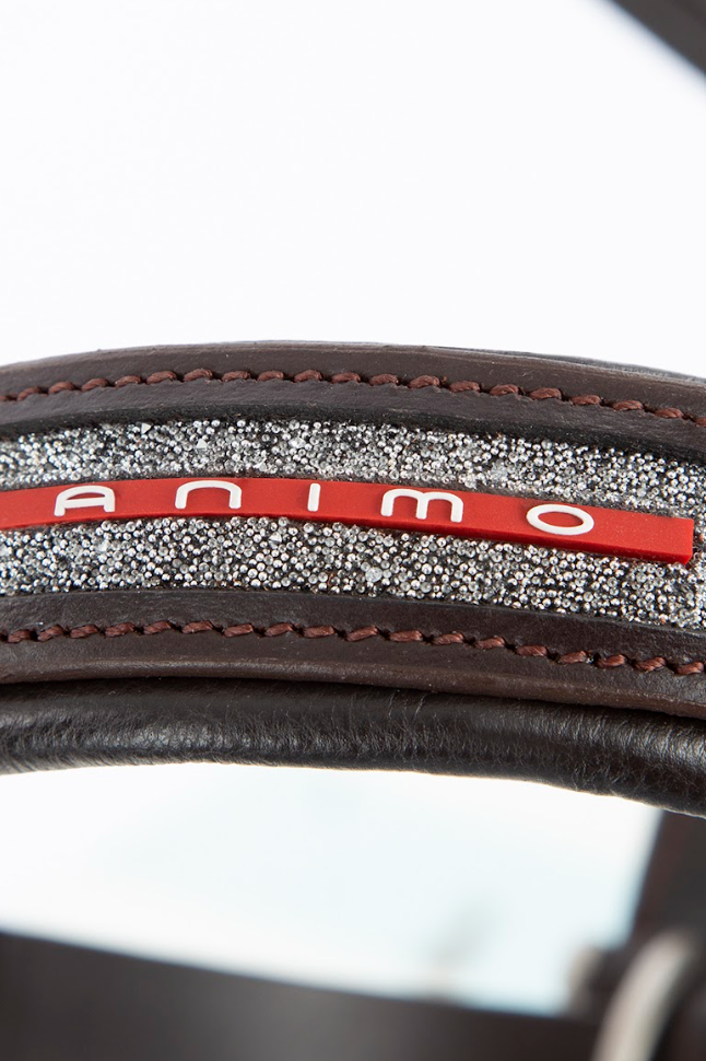Jamen prøv lige at se denne fantastiske grime fra Animo! Animo Usher lædergrime med bling. Virkelig lækker lædergrime hvis man gerne vil lave lidt "show-off" og så er den blød og med meget behageligt nakkestykke.