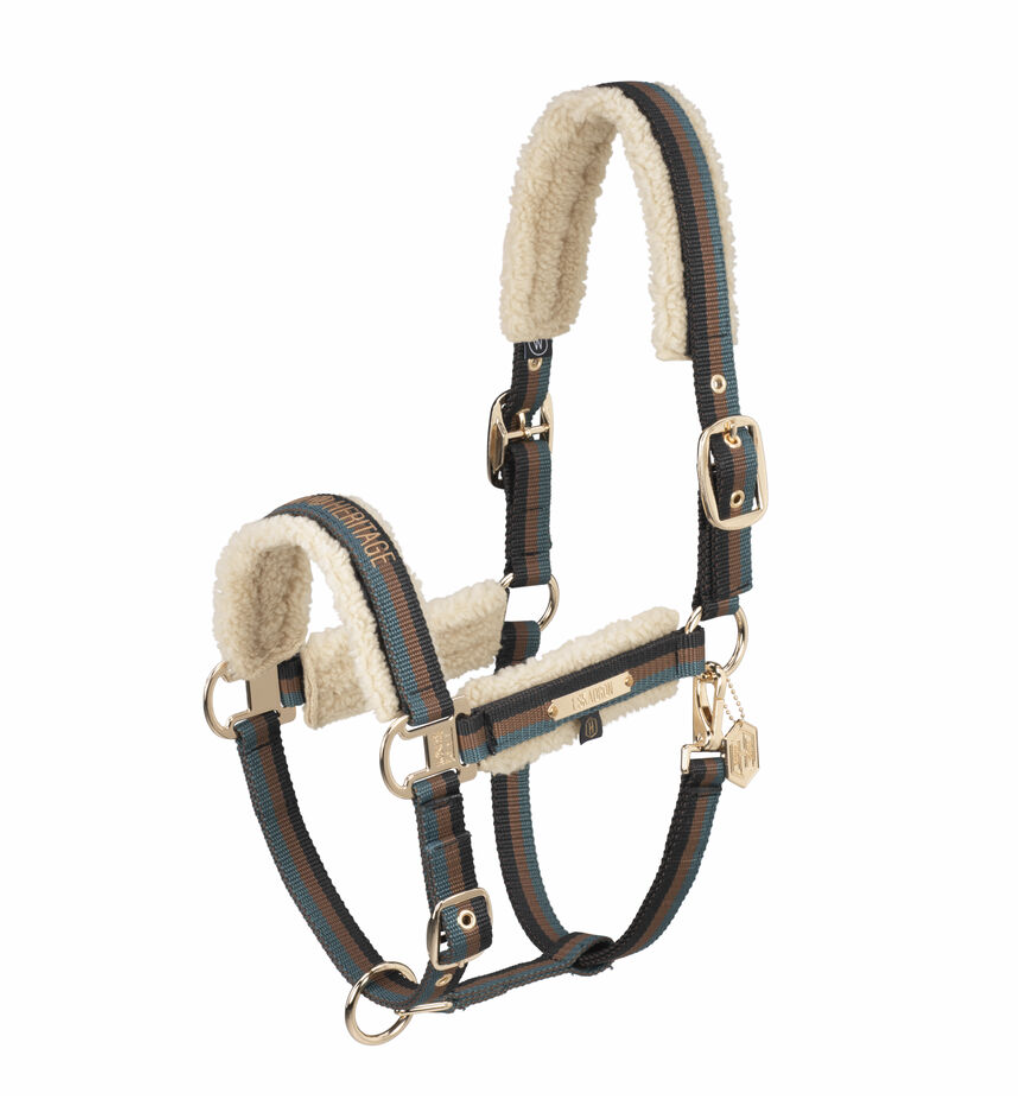 Denneher kunne vi altså ikke stå for: Eskadron Heritage Double Pin teddyfleece grime i den lækreste farvekombination. Den populære grime fra Eskadron med aftageligt teddyfleece er en del af Eskadrons eksklusive Heritage 24/25 kollektion. Grimen kan justeres under mulen samt i begge sider. En velsiddende grime til både striglepladsen, køreturen, gåturen eller måske endda fold, hvis din pony/hest fortjener lidt ekstra. Guldspænder samt logo i guldprint.