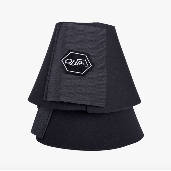 QHP Neoprenklokker er fremstillet af tyk neopren med dobbelt velcrolukning. Giver god stødabsorbering og beskytter hestens balle og hov mod stød og slag. Kan anvendes både til fold og ridning.