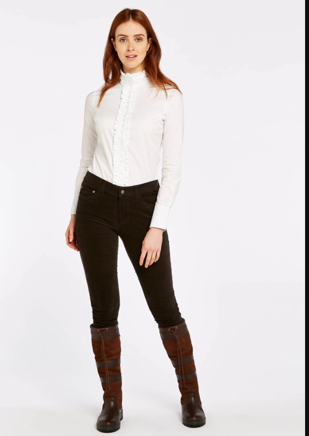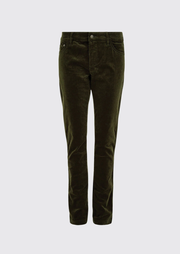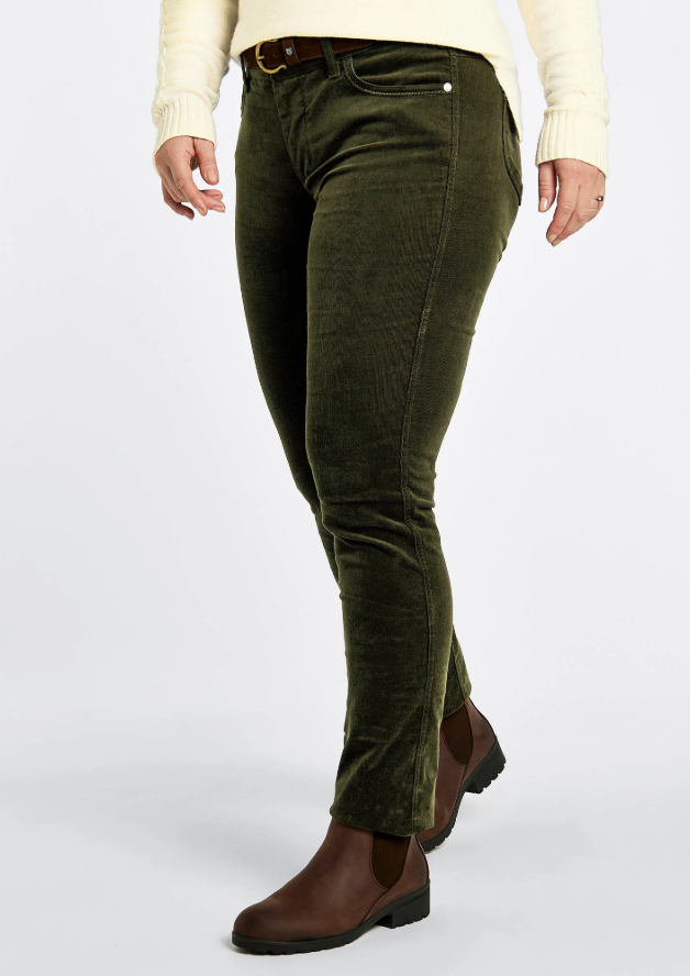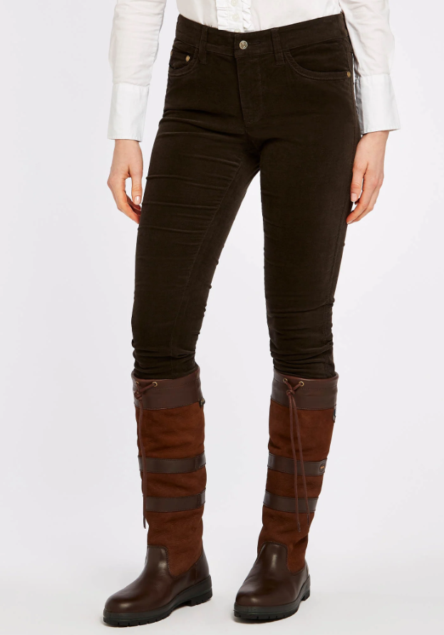 Honeysuckle babyfløjlsbukser med stretch. Disse populære bukser findes i et utal af farver hvilket er godt, da det er en buks som praktisk mennesker med sans for komfort og kvalitet godt kan blive lidt afhængige af! Disse fløjlsbukser matcher perfekt ind i den lækre country style, som Dubarry står for. Pasformen er taget fra jeans verdenen og bukserne passer perfekt til det landlige liv eller til jagter. Match dem med et par lækre Dubarry Galway støvler eller lignende. De er meget stilfuld men yderst behagelige at have på, så du kan bruge dem i stalden, til lange gåture, på jagt eller en slentretur i byen med veninderne.