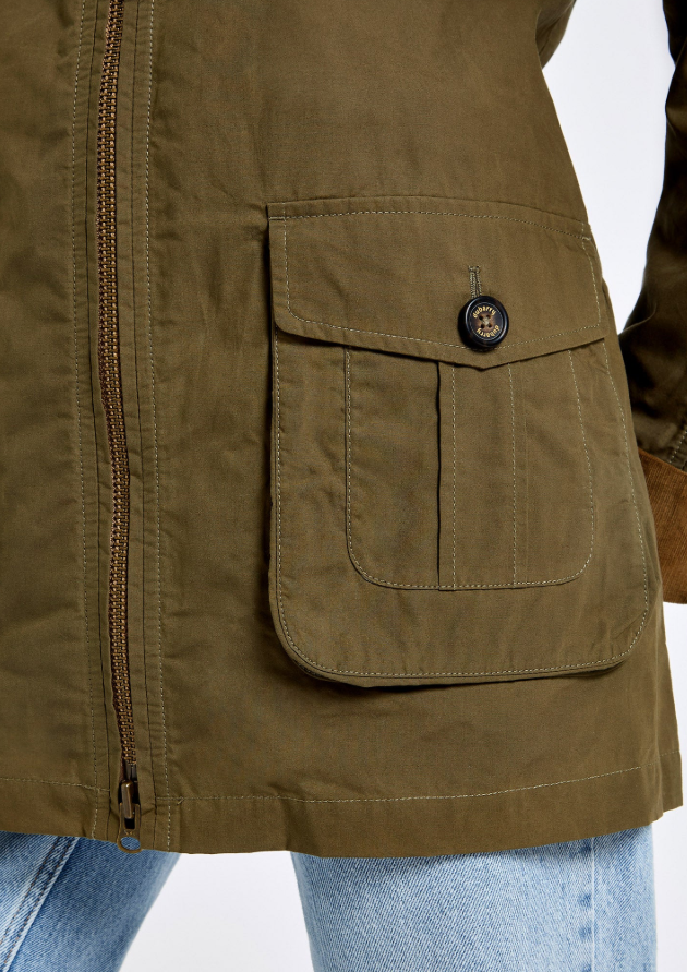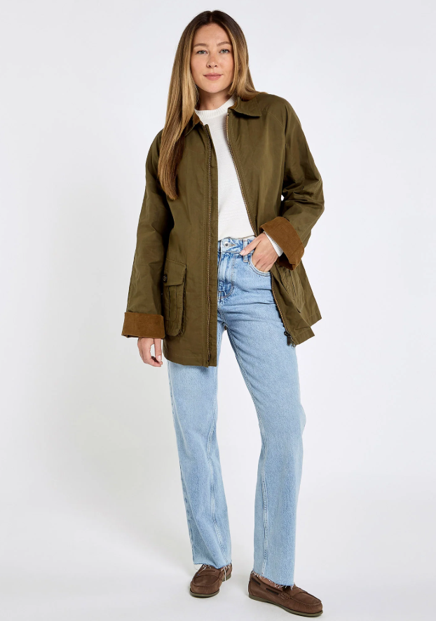 Om du skal i stalden eller vil bruge denne jakke til alt andet end hestelivet, så får du her en virkelig lækker stilfuld jakke, som er mega oppe i tiden med dette lidt rå countrylook. Dubarry Delaney er en let voksed oilskindsjakke, som har et moderne og praktisk look og feel. Jakken her er både praktisk og moderne. Bomuldsmaterialet er vokset med en lettere voks en traditionelt, hvilket giver jakken et let brugt udtryk. Den åbne og samtidig lidt fittede siluet jakken bibringer er på en og samme tid både behagelig og stilfuld. praktisk og flatterende. Det her er en jakke du kommer til at bruge i mange år. Så selvom den ser ud til allerede at have oplevet noget i livet, så er dette en jakke du kommer til at få mange oplevelser med i fremtiden!